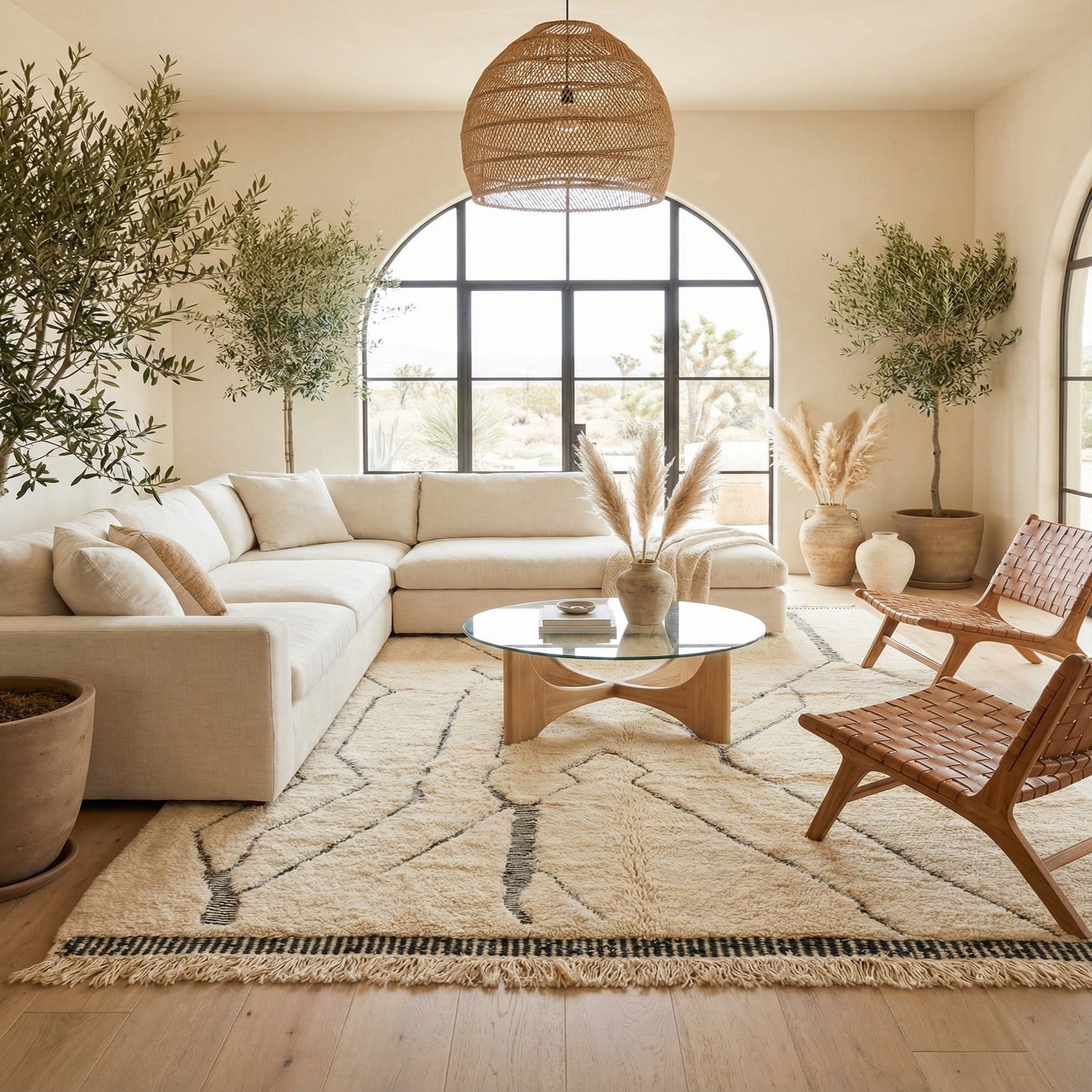 This rug pairs naturally with warm wood furniture, linen upholstery and matte metal accents for a modern-bohemian or Scandinavian-inspired look. Place it under a low-profile sofa and coffee table to ground a living area, layer it at the foot of a bed to add texture to a serene bedroom, or use it in a cozy reading corner to soften hardwood floors. The neutral cream base and restrained linear pattern also allow it to work alongside mid-century pieces or contemporary minimalist interiors where a touch of warmth and tactile interest is needed.