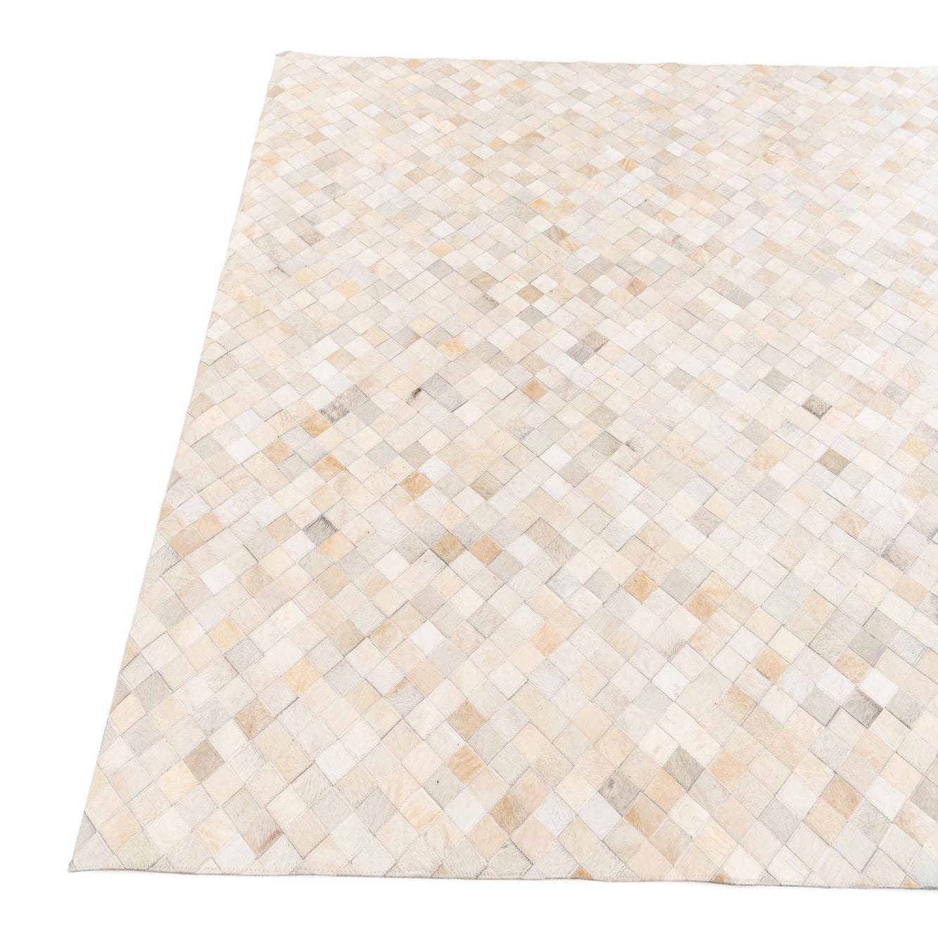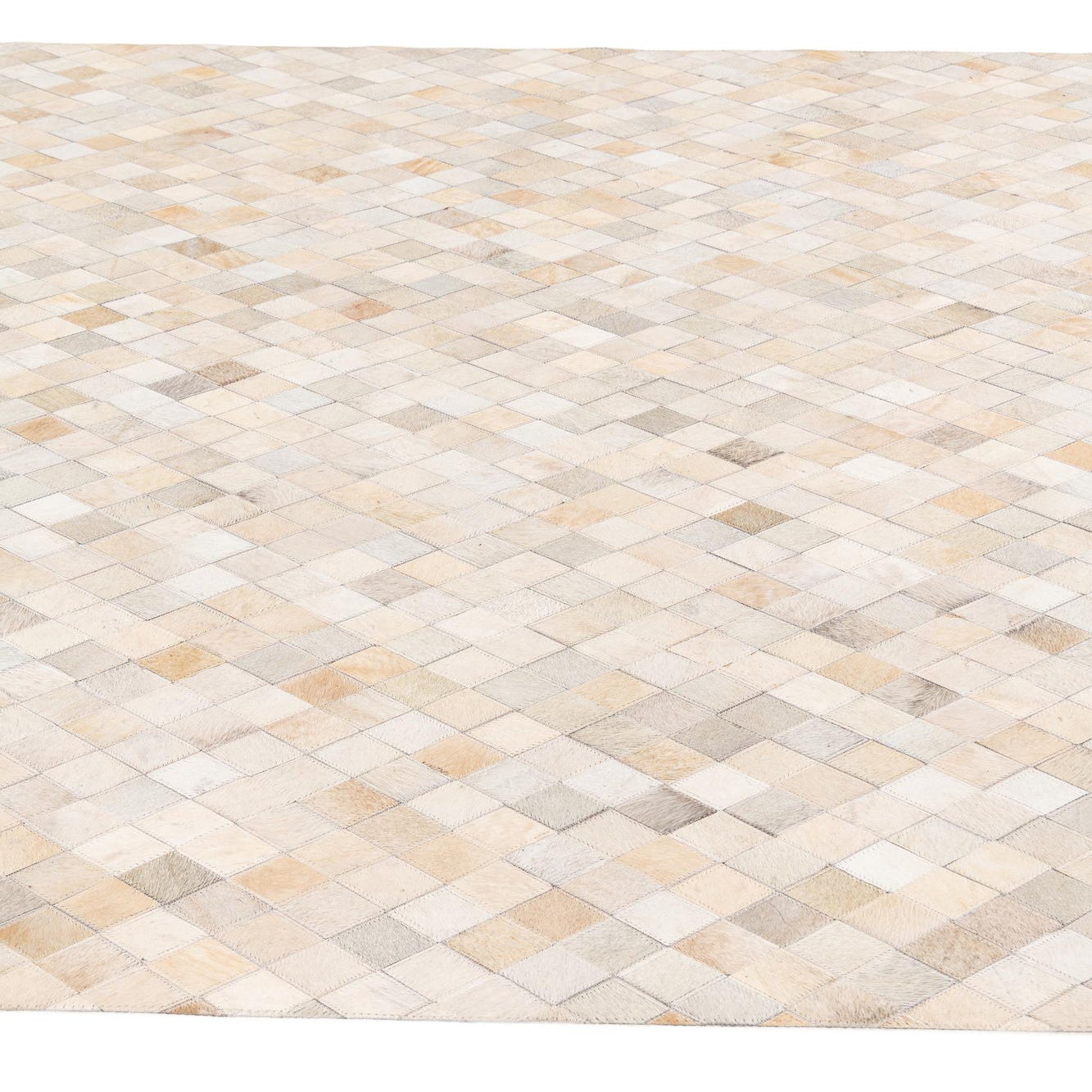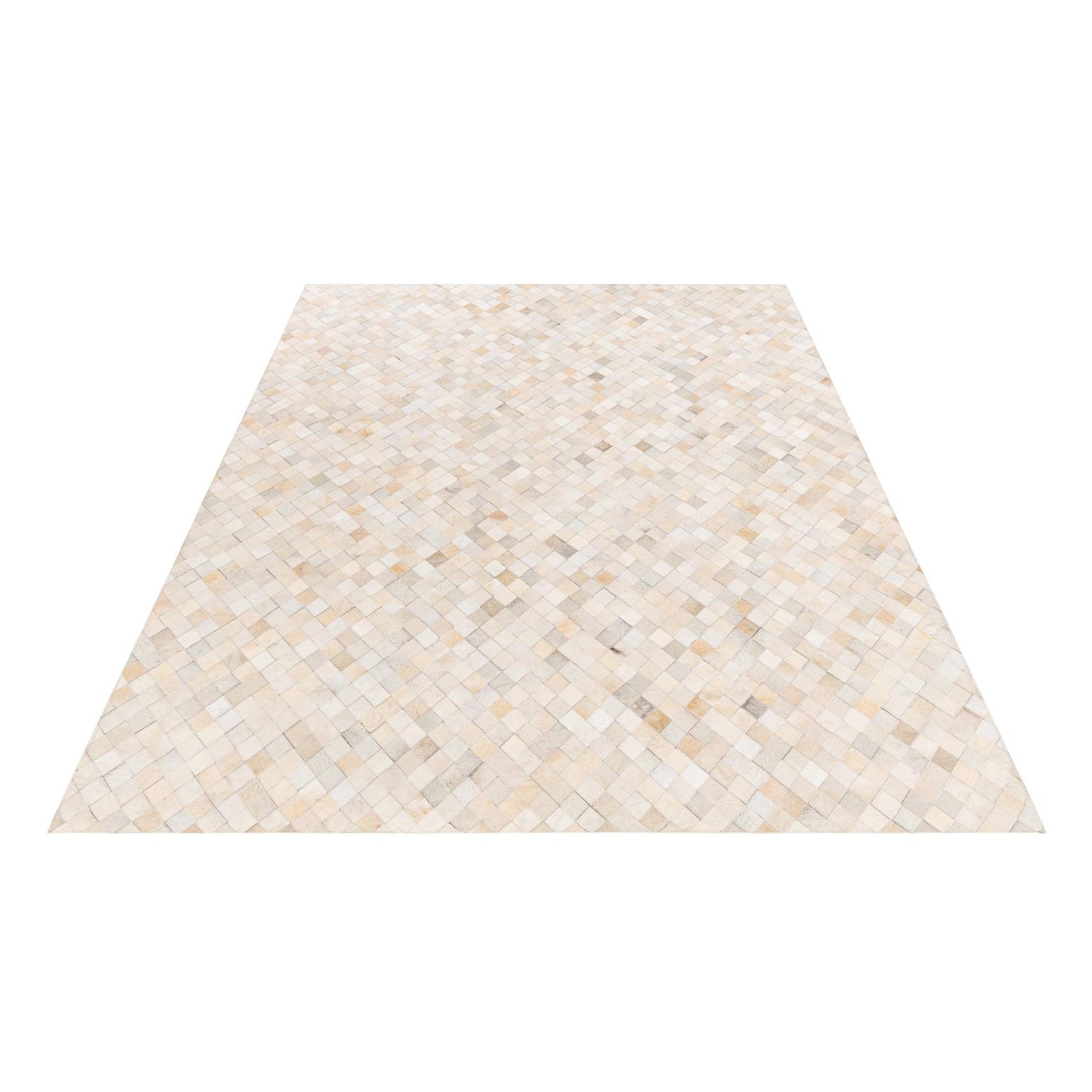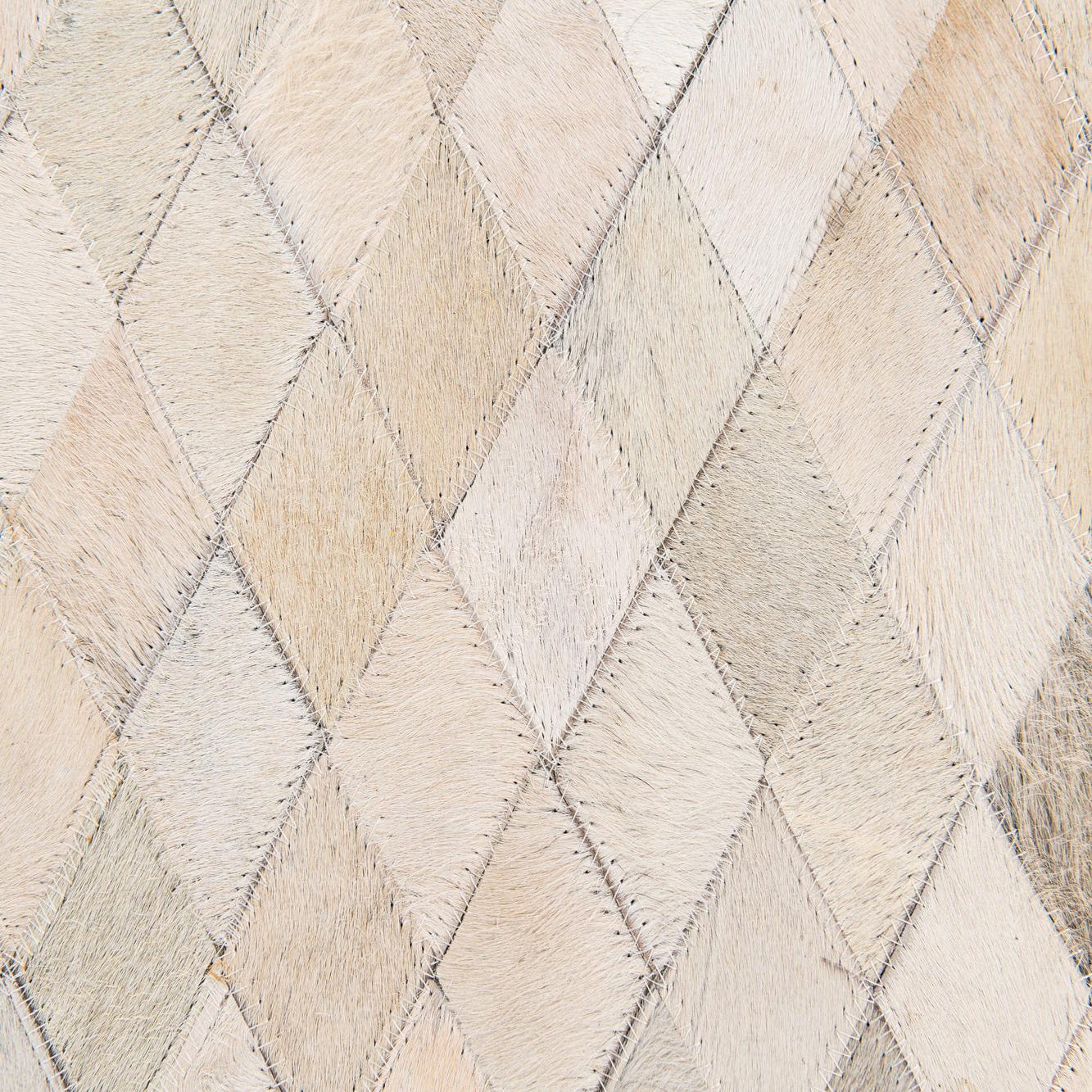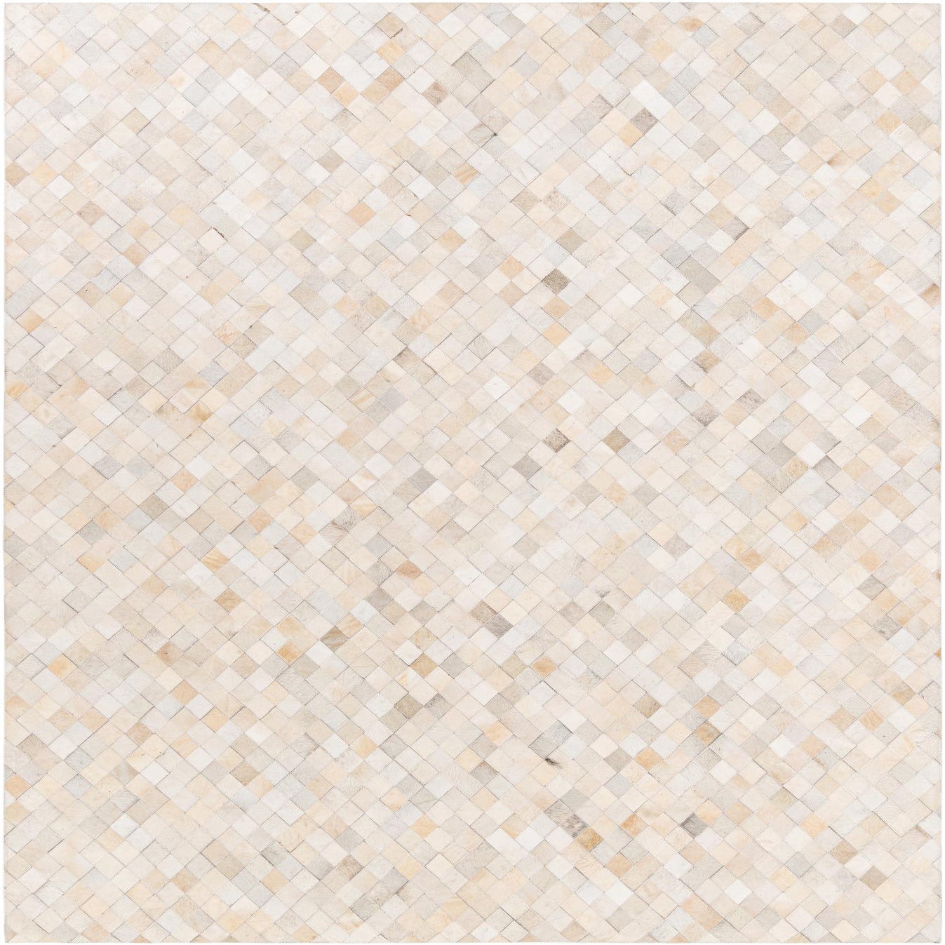 A 6x9 rectangular Cowhide Stocks rug featuring a modern diamond pattern in varying shades of ivory and cream.