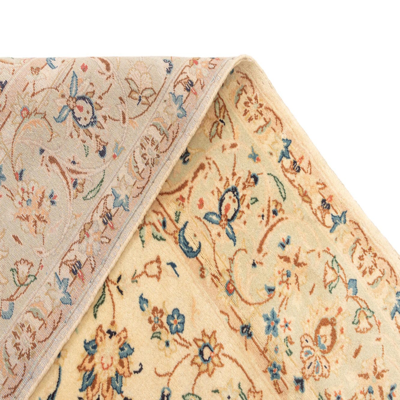 Decoratively versatile, this Kashan wool rug would be at home in a range of interior design scenarios. It complements traditional decors with its timeless elegance and can serve as a sophisticated anchor in transitional spaces that blend classic and contemporary elements. The rug would be especially suited for placement in a living room, dining area, or study, where it can ground the furniture and establish a refined aesthetic atmosphere.