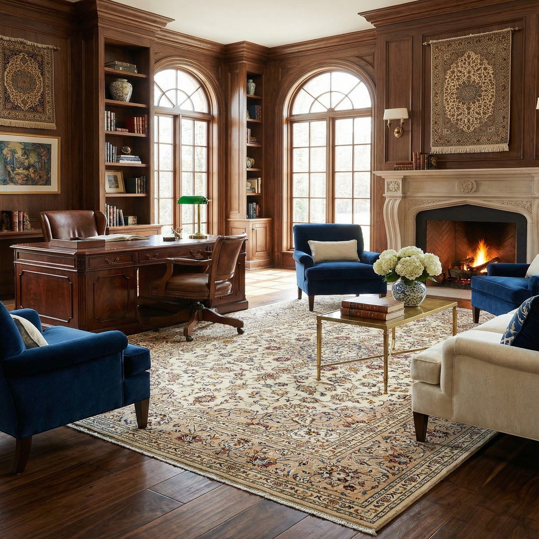 The classic style of this rug is versatile, complementing a variety of interior design themes, from formal settings, such as dining rooms and home offices, to more casual living spaces. In a traditional decor, it would anchor the room with a sense of timelessness, while in a contemporary space, it could serve as a sophisticated contrast to modern elements.