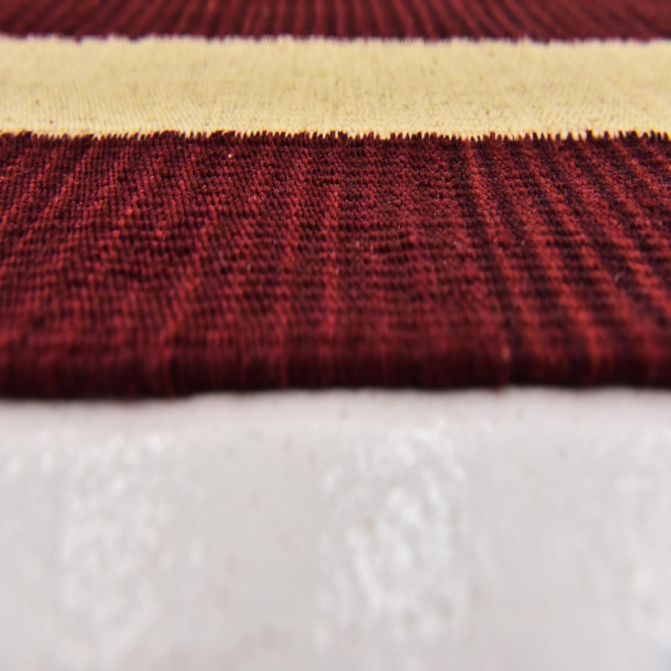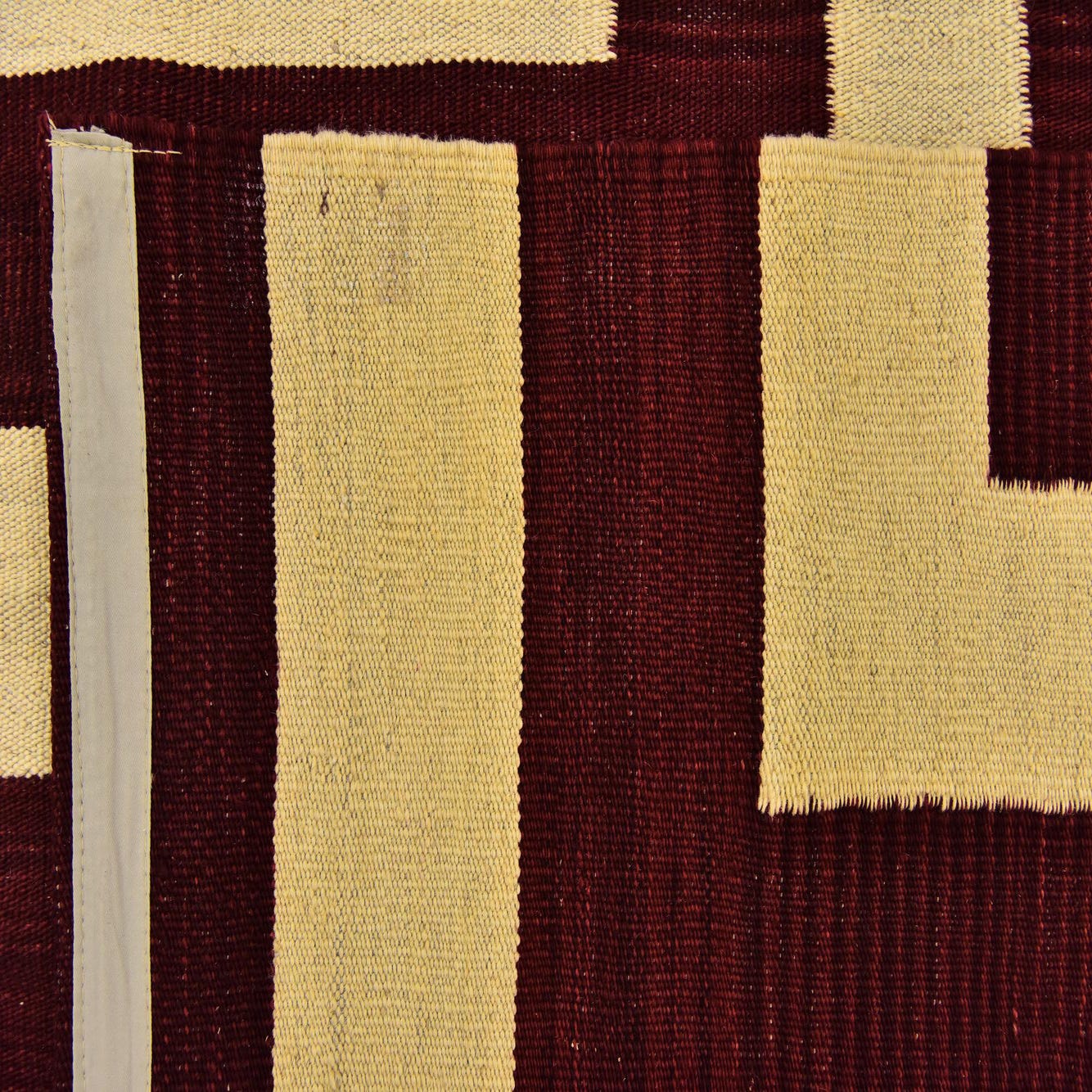 A 6x9 rectangular Kilim Modern rug with a bold geometric pattern of thick ivory lines on a rich red background.