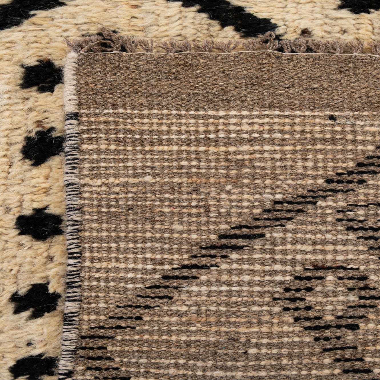 Primary color is Cream. Colors in this rug include: Cream, Black.