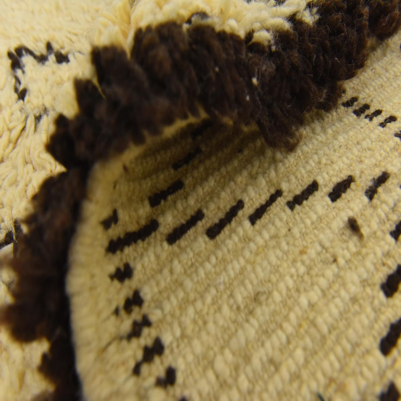 Primary color is Cream. Colors in this rug include: Cream, Brown.