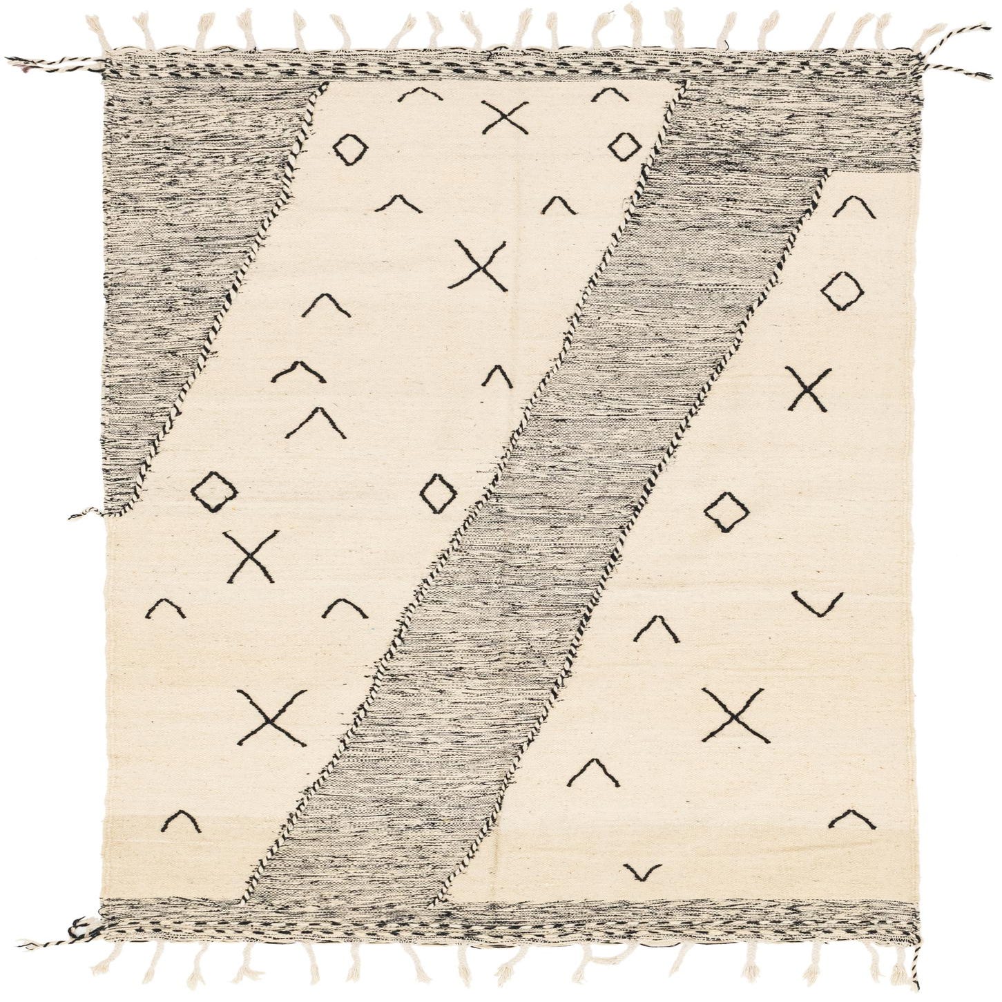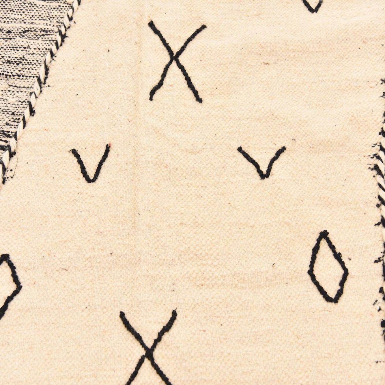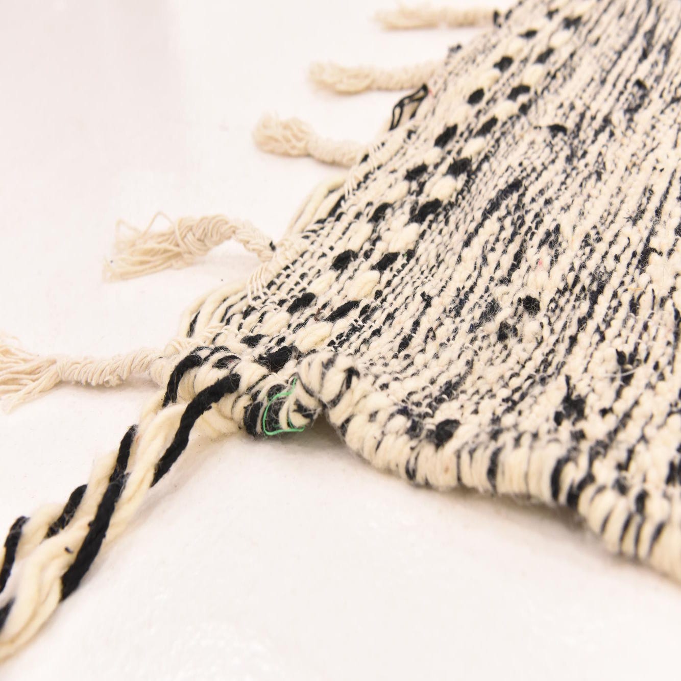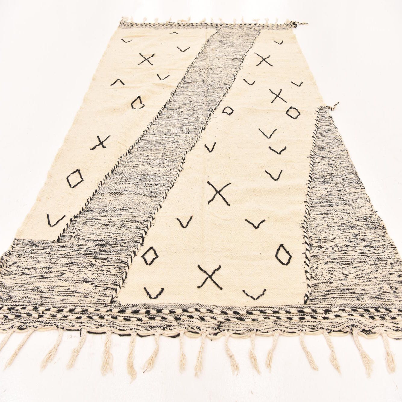 Given its neutral yet impactful color palette and traditional design, this rug would effortlessly integrate into an array of interior spaces. It would complement minimalist or Scandinavian-style decors, anchoring the space with its artisanal roots. In a modern farmhouse setting, it can serve as a subtle focal point, harmonizing with rustic elements. The rug's aesthetic also pairs well with eclectic interiors, where its cultural heritage can blend with diverse decor for a curated look.