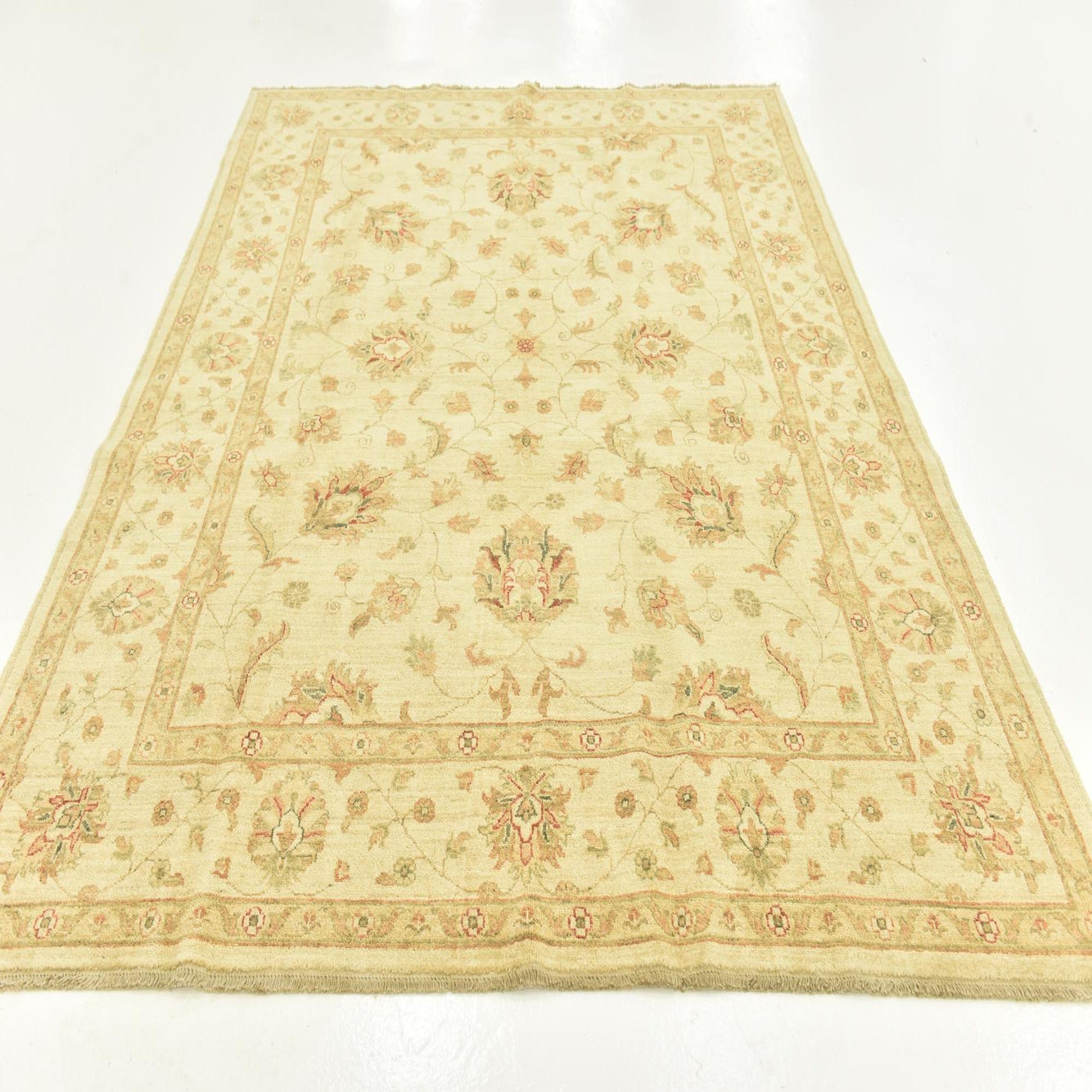 A 6x9 rectangular Peshawar Ziegler rug in ivory with a traditional botanical and floral pattern.