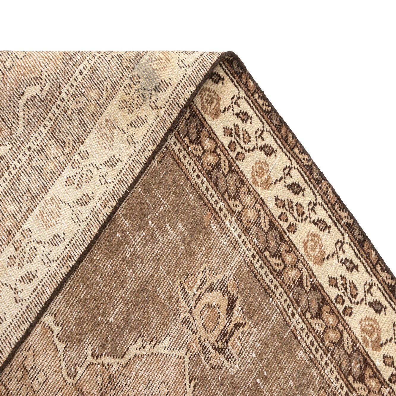 This hand-made rug from the Vintage collection is a sophisticated choice for any interior that appreciates timeless design. Crafted from 100% wool, this 6x9 piece showcases a durable yet soft texture and a warm blend of cream and varying brown shades. The primary cream background is complemented by a subtle pattern highlighted in light brown, imbuing the piece with depth and an elegant, aged appearance.