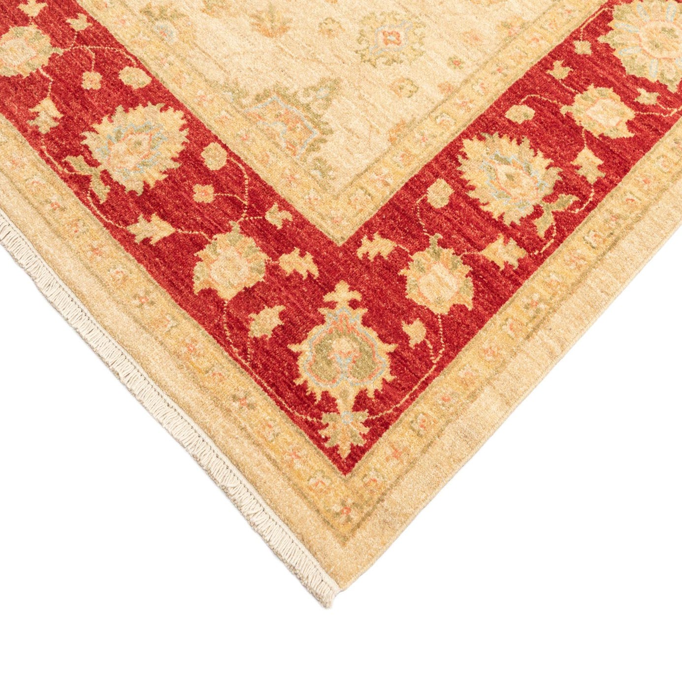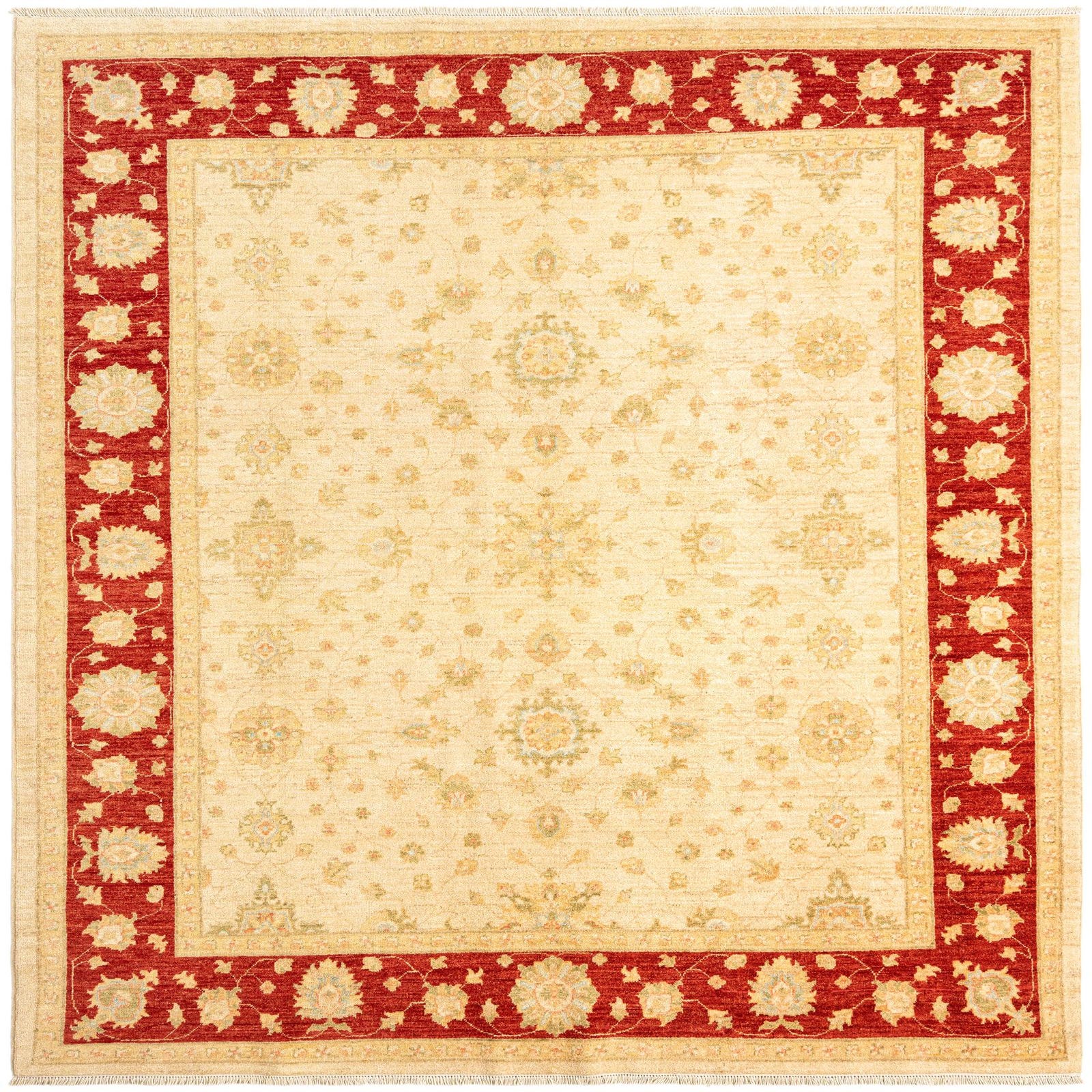 A 6x9 rectangular Ziegler Persian rug with an ivory field and a rich red border featuring floral motifs.