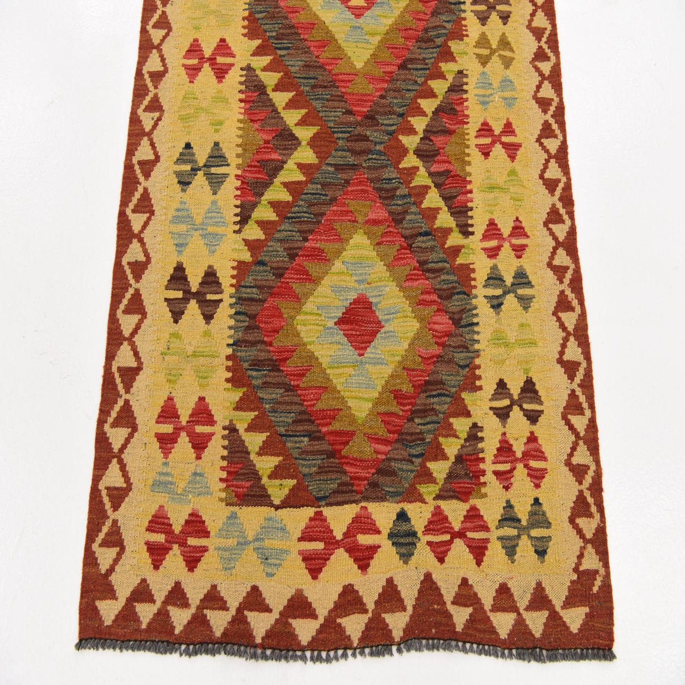 Detail image of  3' 2 x 6' 7  Hand Woven Kilim Maymana Wool Runner Rug