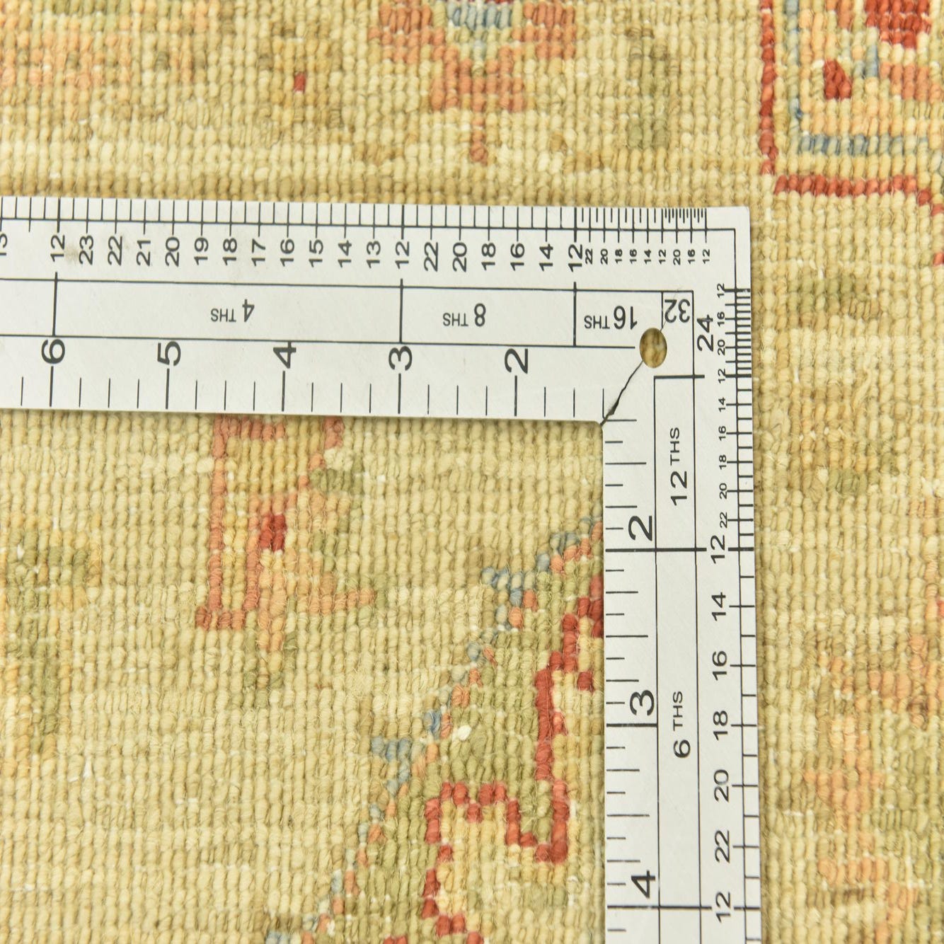 The Peshawar Ziegler 7 Ft Runner, meticulously hand-knotted from 100% hand-spun wool, presents a harmonious blend of comfort and timeless elegance. With a plush texture that invites touch, this runner exhibits a cream background, gracefully adorned with a traditional pattern featuring hues of beige, blue, brown, red, ivory, and gold, creating a versatile and inviting color palette.
