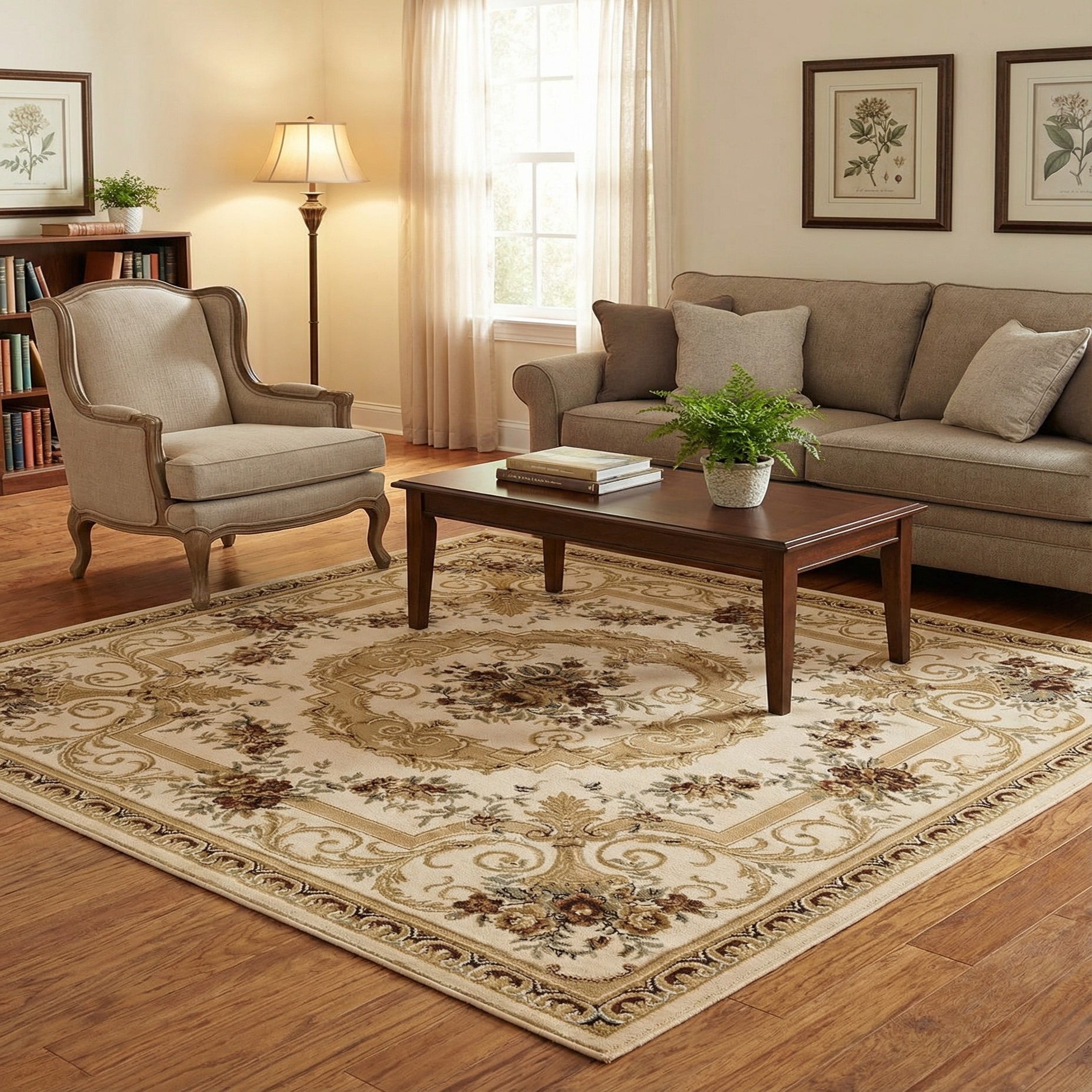 Machine made from 100% polypropylene, the pile has a low, slightly plush hand that feels soft beneath your feet while keeping the pattern crisp and detailed. This piece fits naturally in a formal living room or dining area, under a coffee table or layered on hardwood; it also complements traditional entryways and transitional spaces that mix antique pieces with contemporary seating. Pair it with warm wood furniture, leather sofas, or neutral upholstery when you want the rug’s warm tones and ornate pattern to anchor the room.