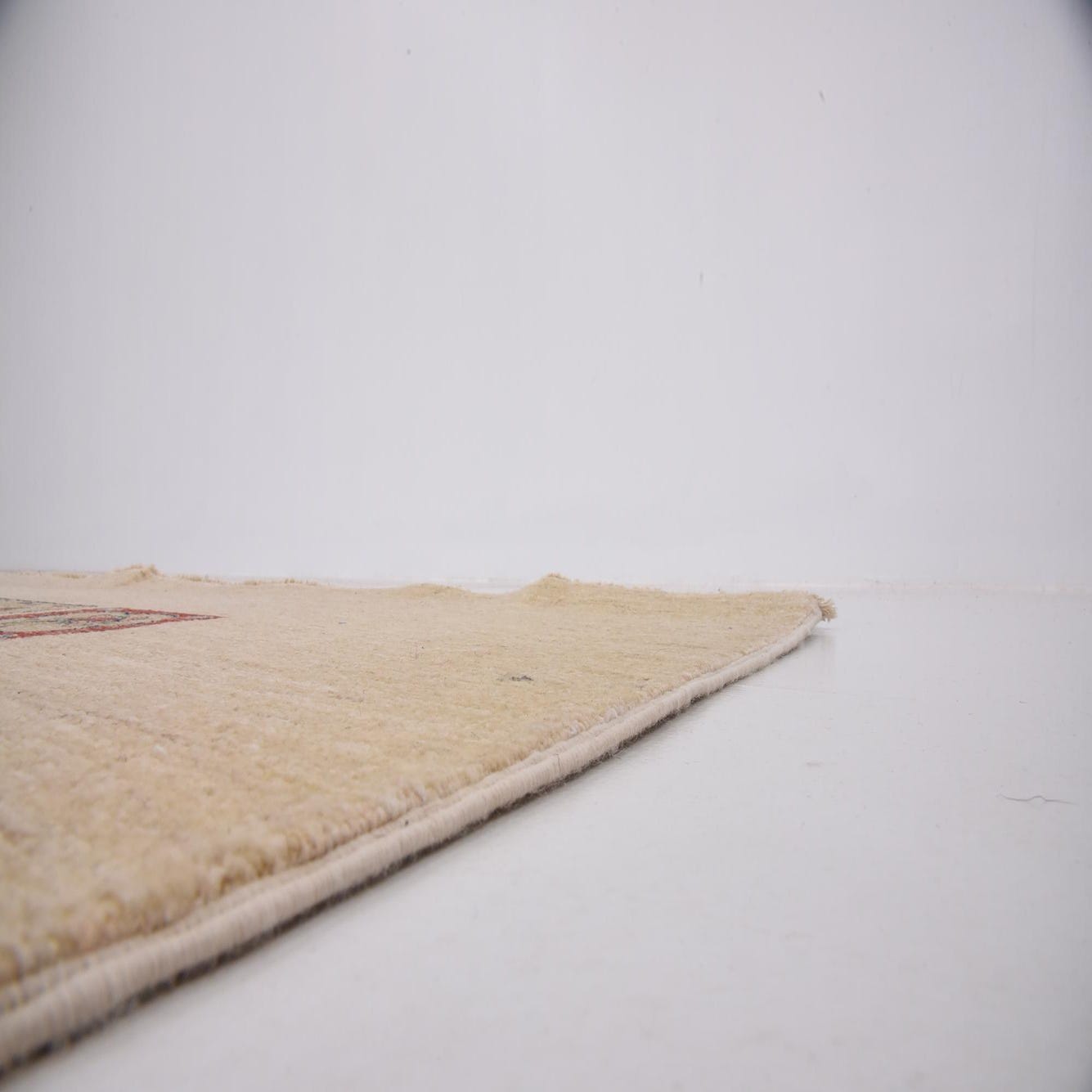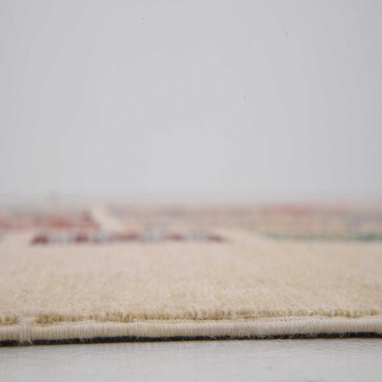 Primary color is Cream. Colors in this rug include: Cream, Blue, Green, Navy Blue, Purple, Tan, Red.