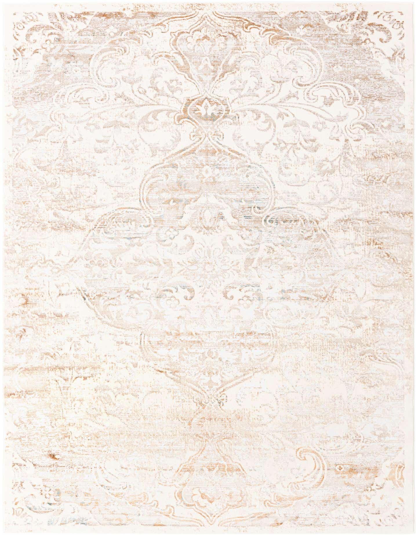 Primary color is Cream. Colors in this rug include: Cream, Light Brown, Gray, Green.