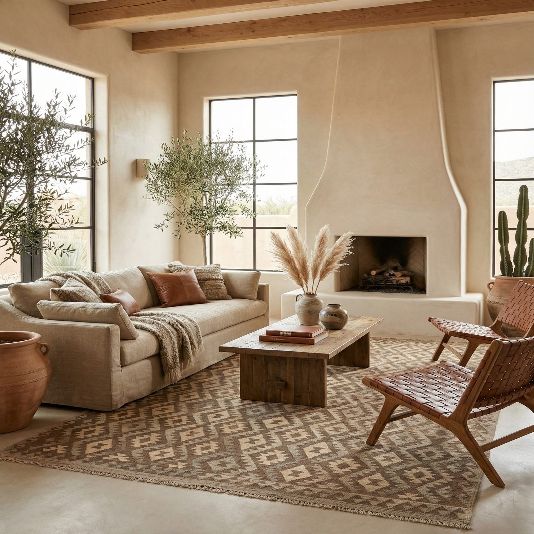 Primary color is Cream. Colors in this rug include: Cream, Brown, Light Brown.
