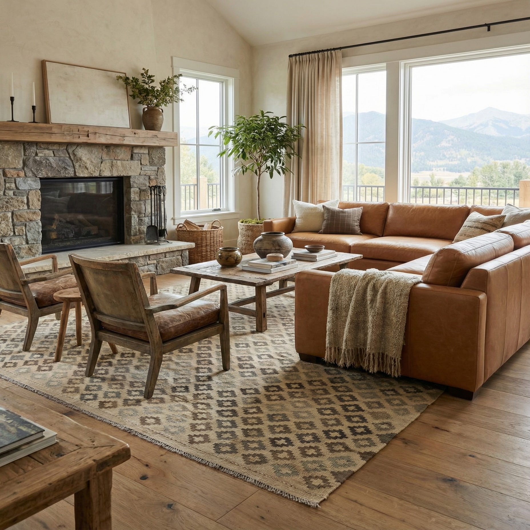 Primary color is Cream. Colors in this rug include: Cream, Brown, Gray.