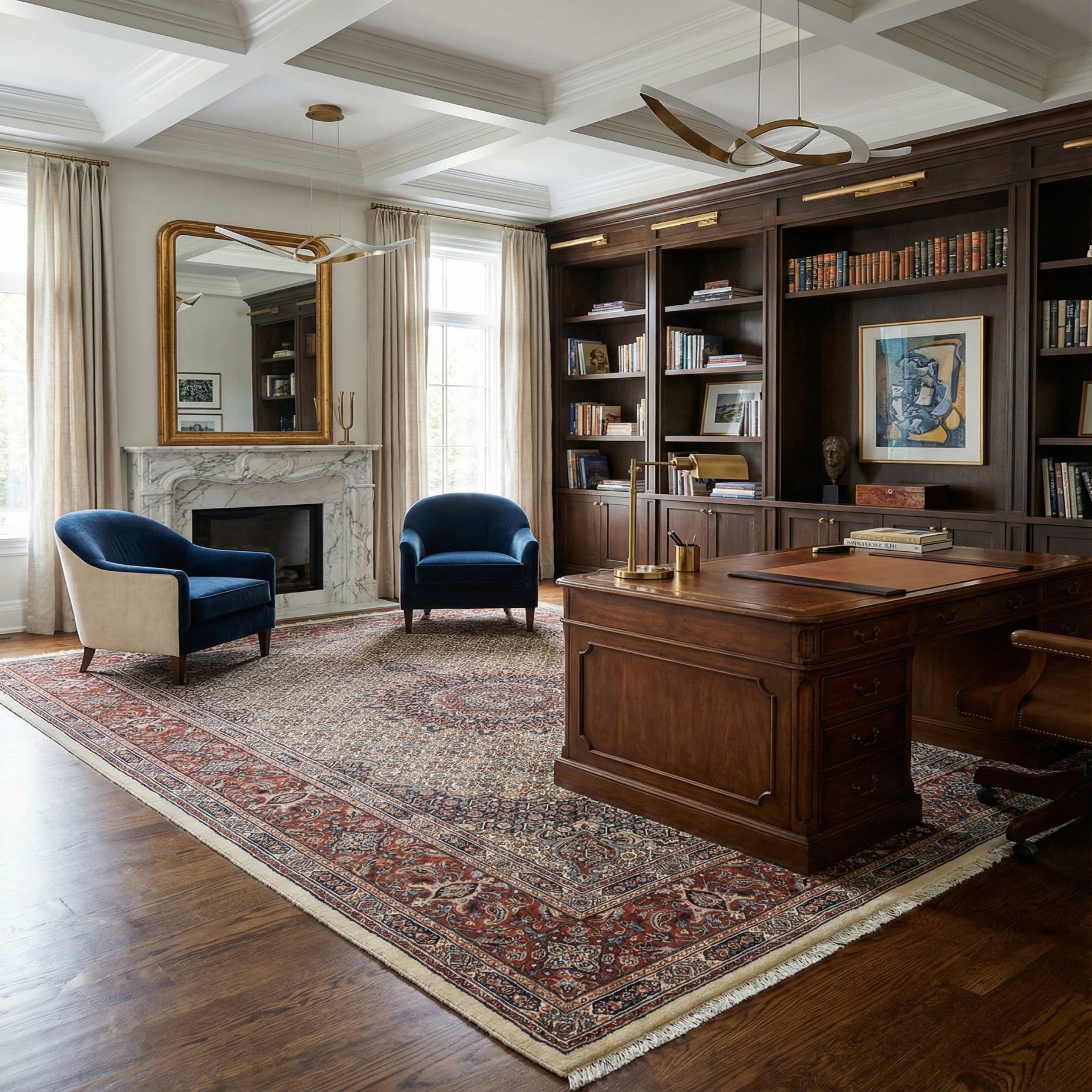 This piece is well-suited for spaces that aim to create a sense of sophistication and time-honored style. Its elaborate pattern pairs splendidly with traditional, Victorian, or classical interiors, though it can also serve as a striking contrast in more modern or minimalist settings. The rug’s dimensions and design make it an excellent choice for a formal dining room, living area, or a grand entryway where it can set a refined tone for the home.