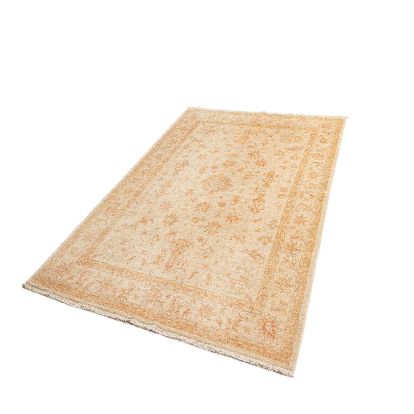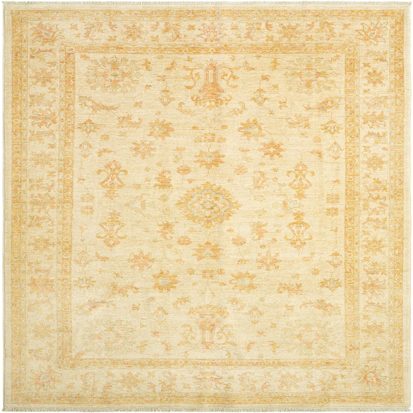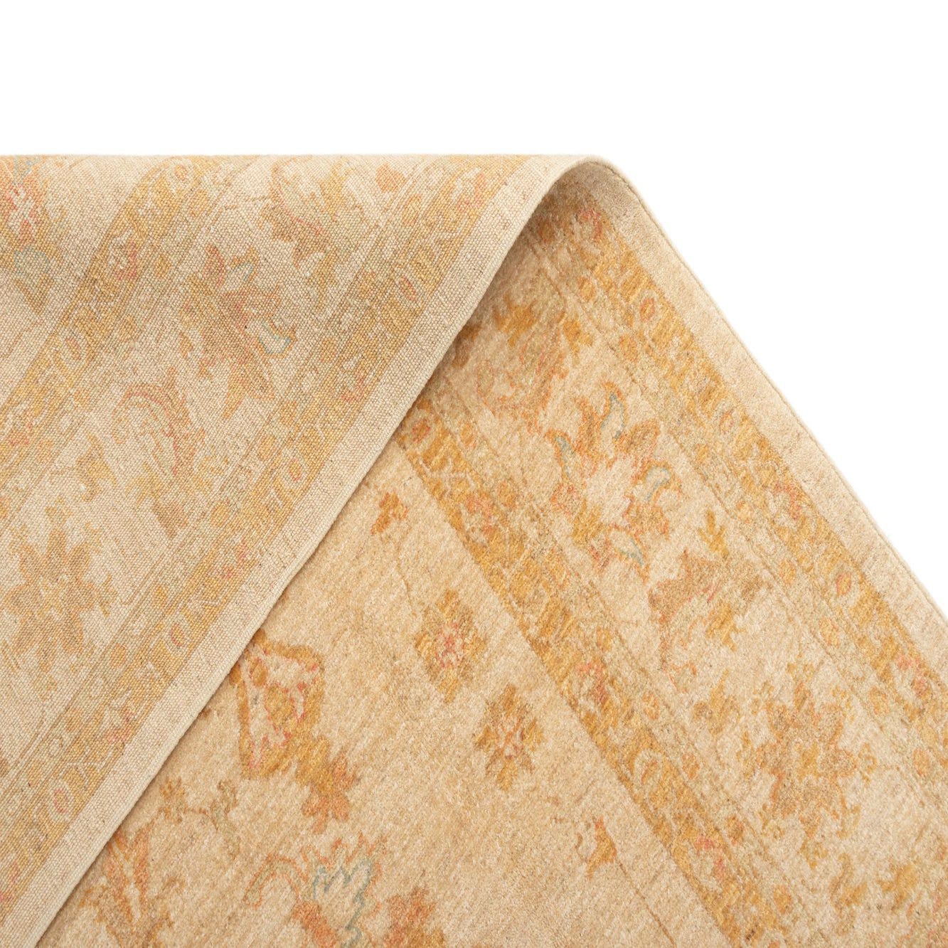 The Ziegler Collection offers a 7x10 hand-made area rug crafted from 100% wool, ensuring a dense weave with a soft, plush feel. Its pattern is a harmonious blend of traditional motifs, including floral and geometrical elements that create a sense of elegance and timelessness. The color palette is anchored by a cream background with tasteful accents of beige, blue, red, olive, and peach, providing a versatile yet subtle spectrum that complements various interior settings.