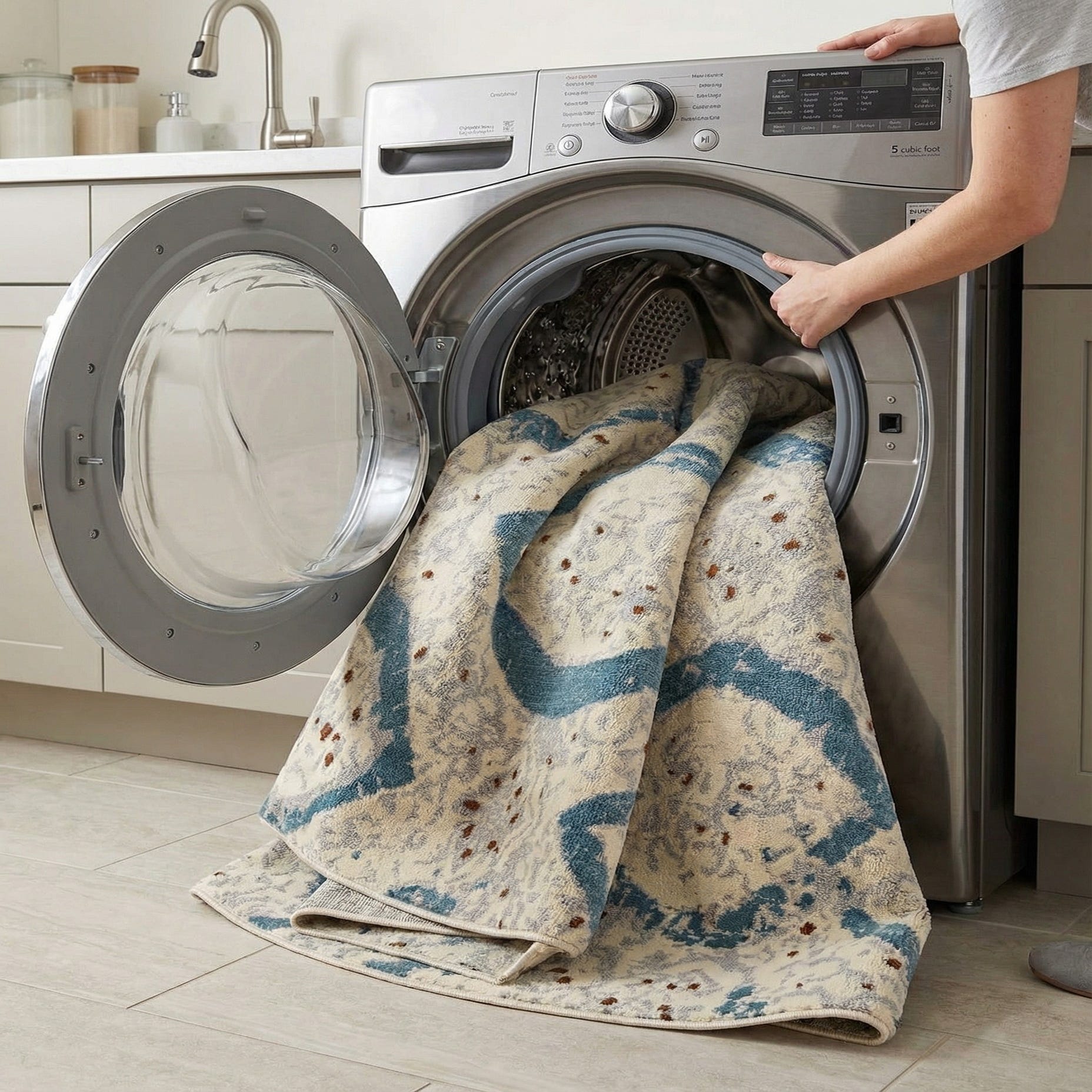 This round rug works well beneath a circular dining table, centered in a casual seating area, or layered over hardwood in a bedroom to define a cozy zone. It pairs naturally with light-wood furniture, navy or denim upholstery, and mixed-metal accents for a relaxed coastal, mid-century, or modern farmhouse interior. Machine-made, 100% polypropylene construction keeps the texture consistent and the design crisp for everyday use.
