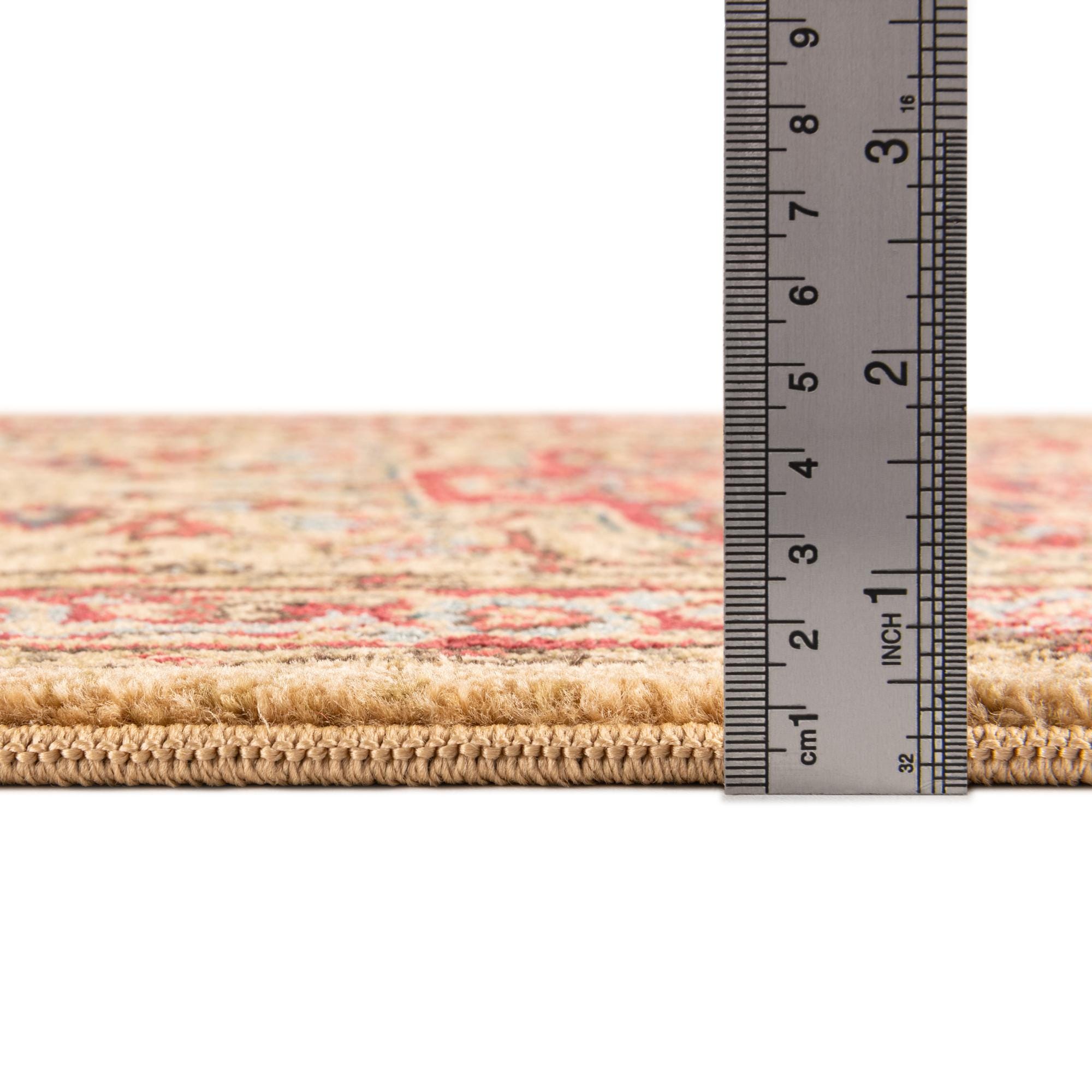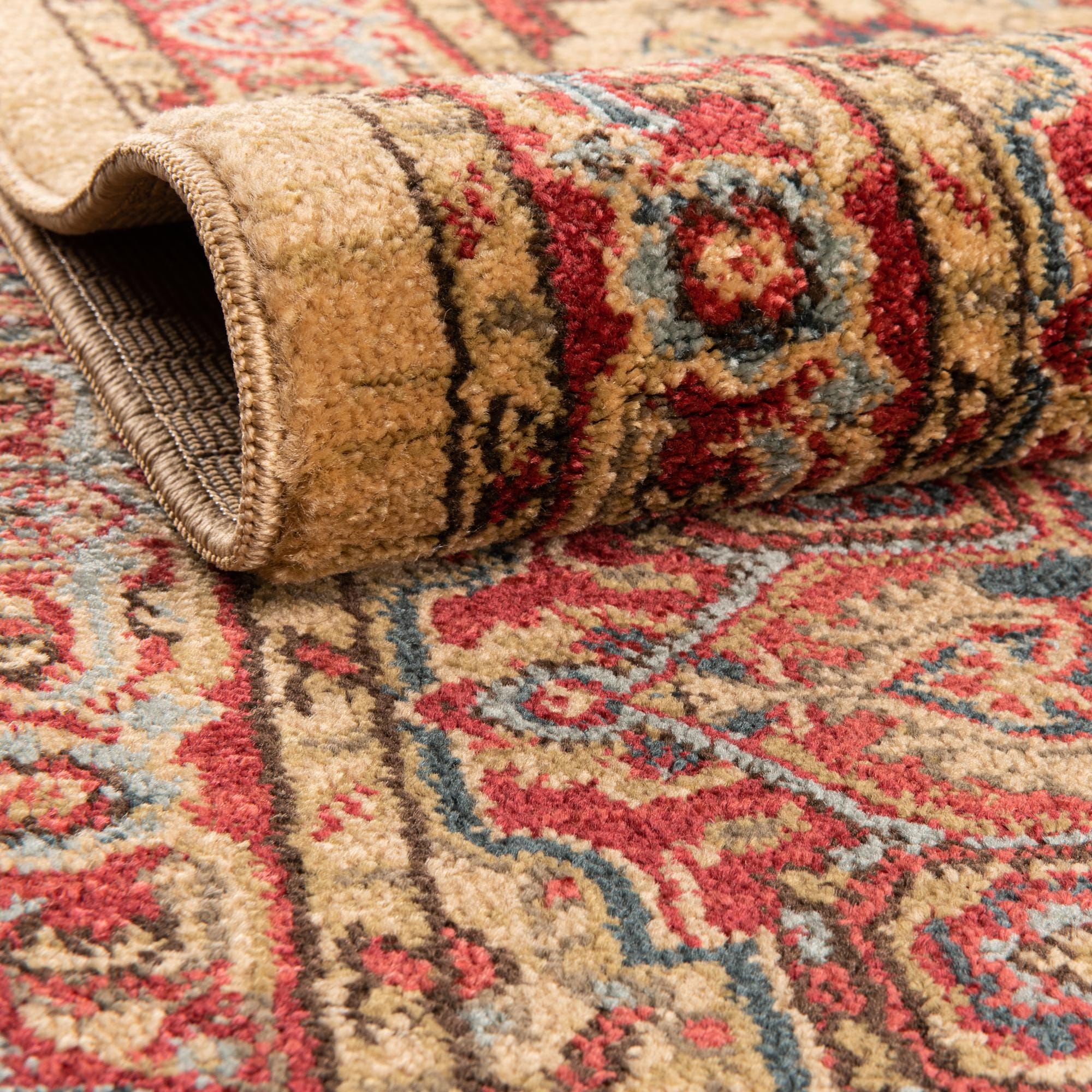 Primary color is Cream. Colors in this rug include: Cream, Brown, Blue, Light Blue, Red, Light Brown.