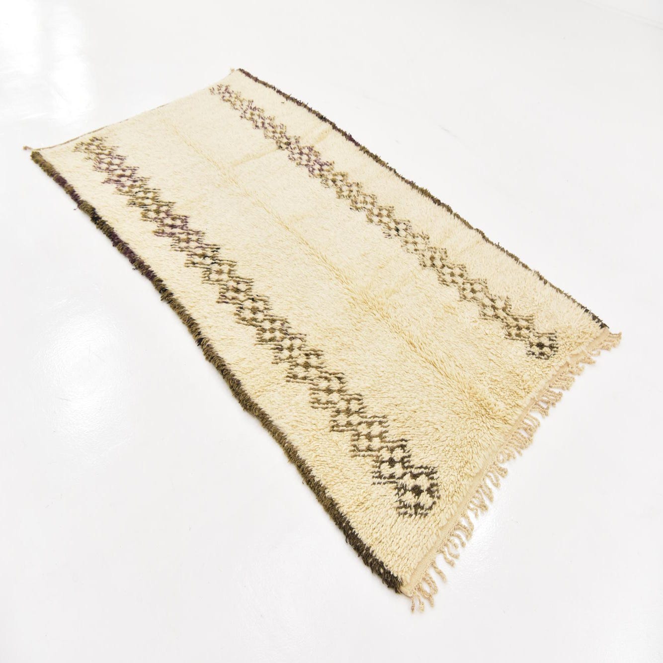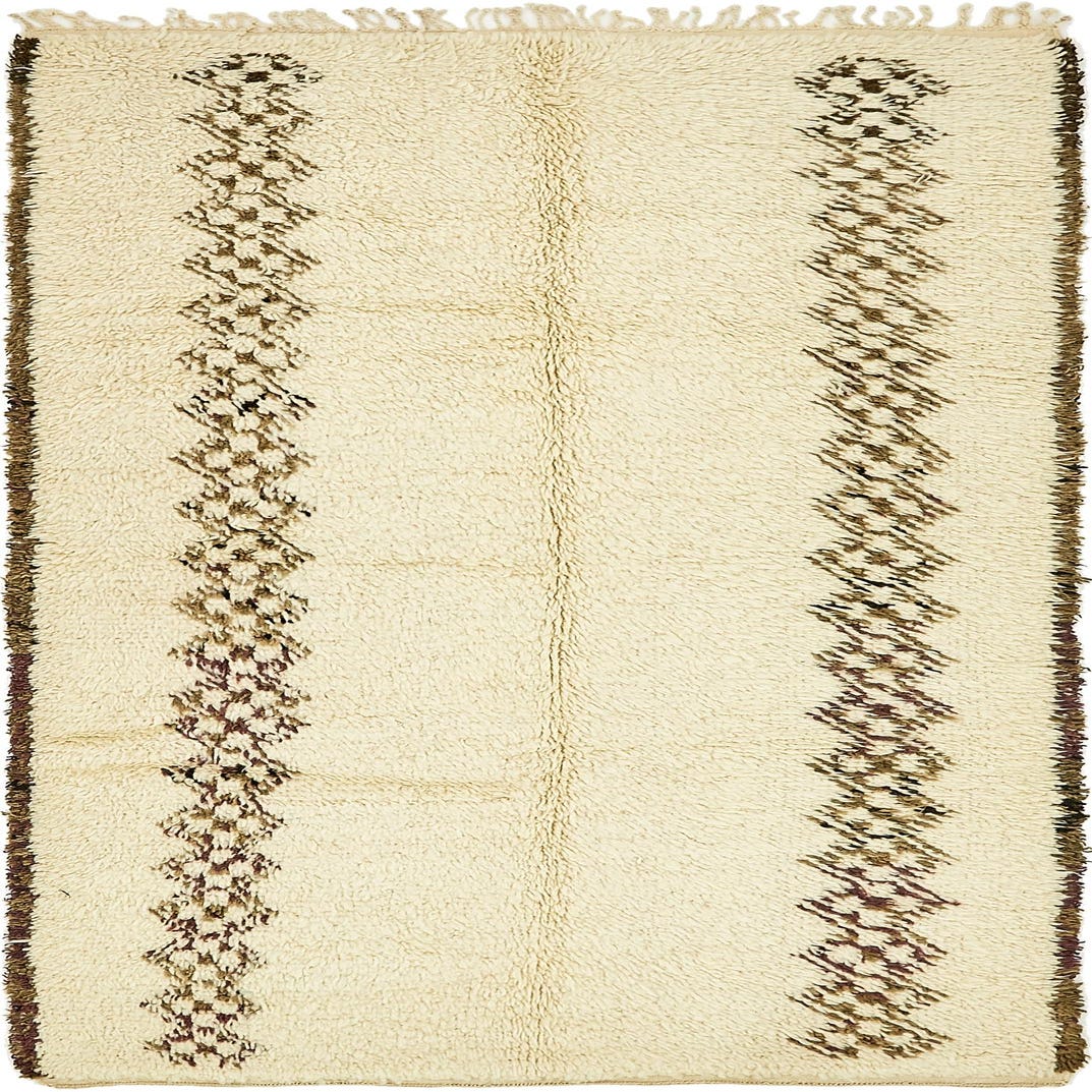 Primary color is Cream. Colors in this rug include: Cream, Brown.
