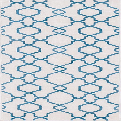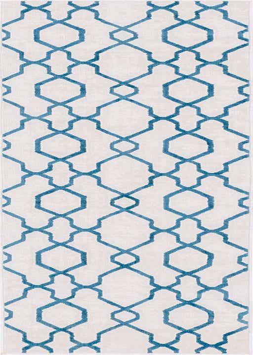 Primary color is Cream. Colors in this rug include: Cream, Blue.