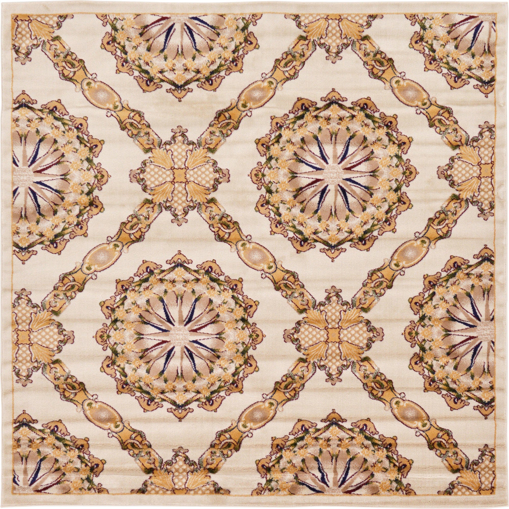 Primary color is Cream. Colors in this rug include: Cream, Beige, Burgundy, Gold, Green, Navy Blue, Ivory.