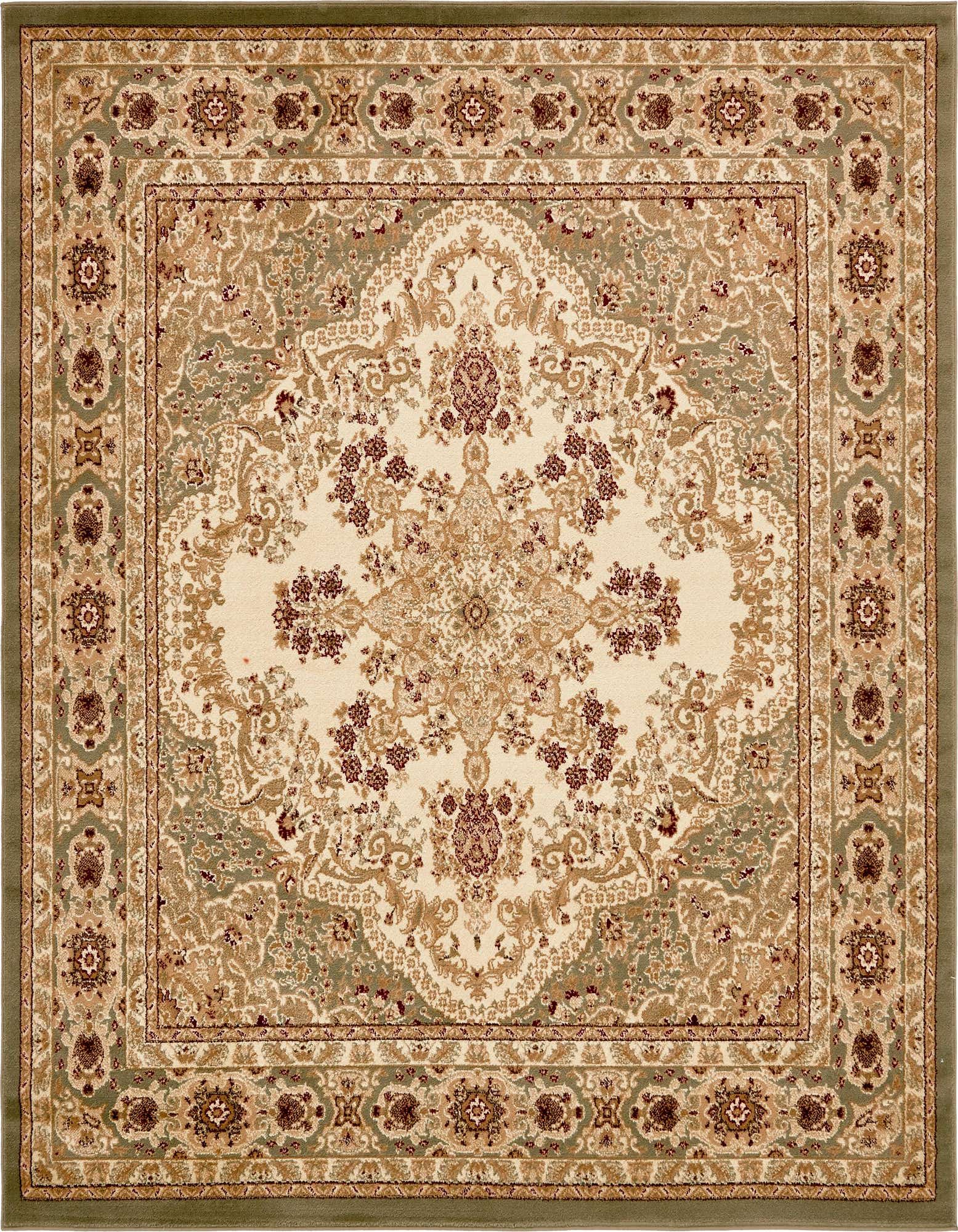 The intricate design and classic hues make this rug a fitting choice for spaces that lean towards traditional or vintage aesthetics. It can serve as a focal point in a living room beneath a coffee table or as an anchor in a dining area, complementing wooden or antique furnishings. Given its stain-resistant and shed-free properties, this piece is equally suitable for high-traffic areas, providing both function and style.