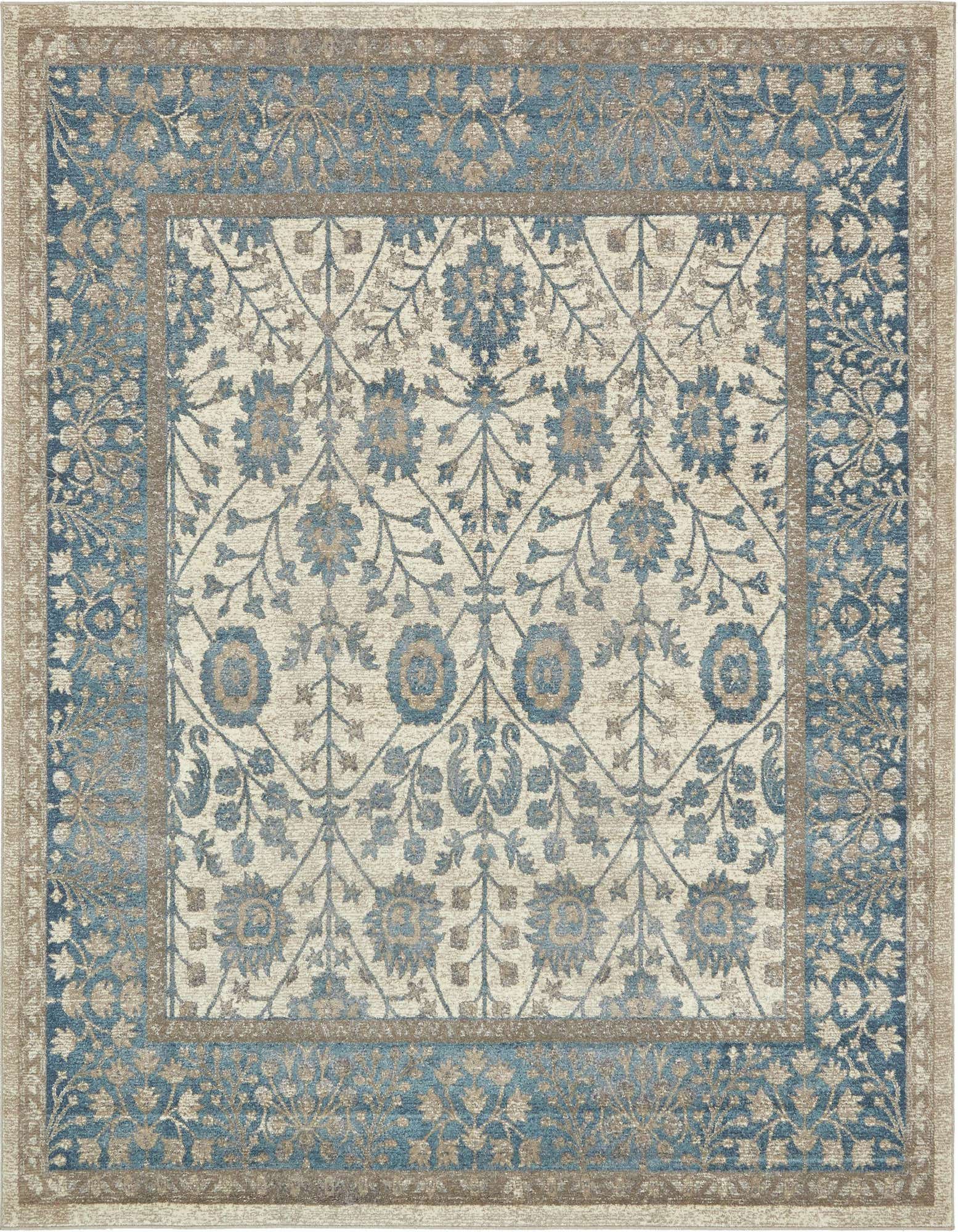 Primary color is Cream. Colors in this rug include: Cream, Light Blue, Ivory.