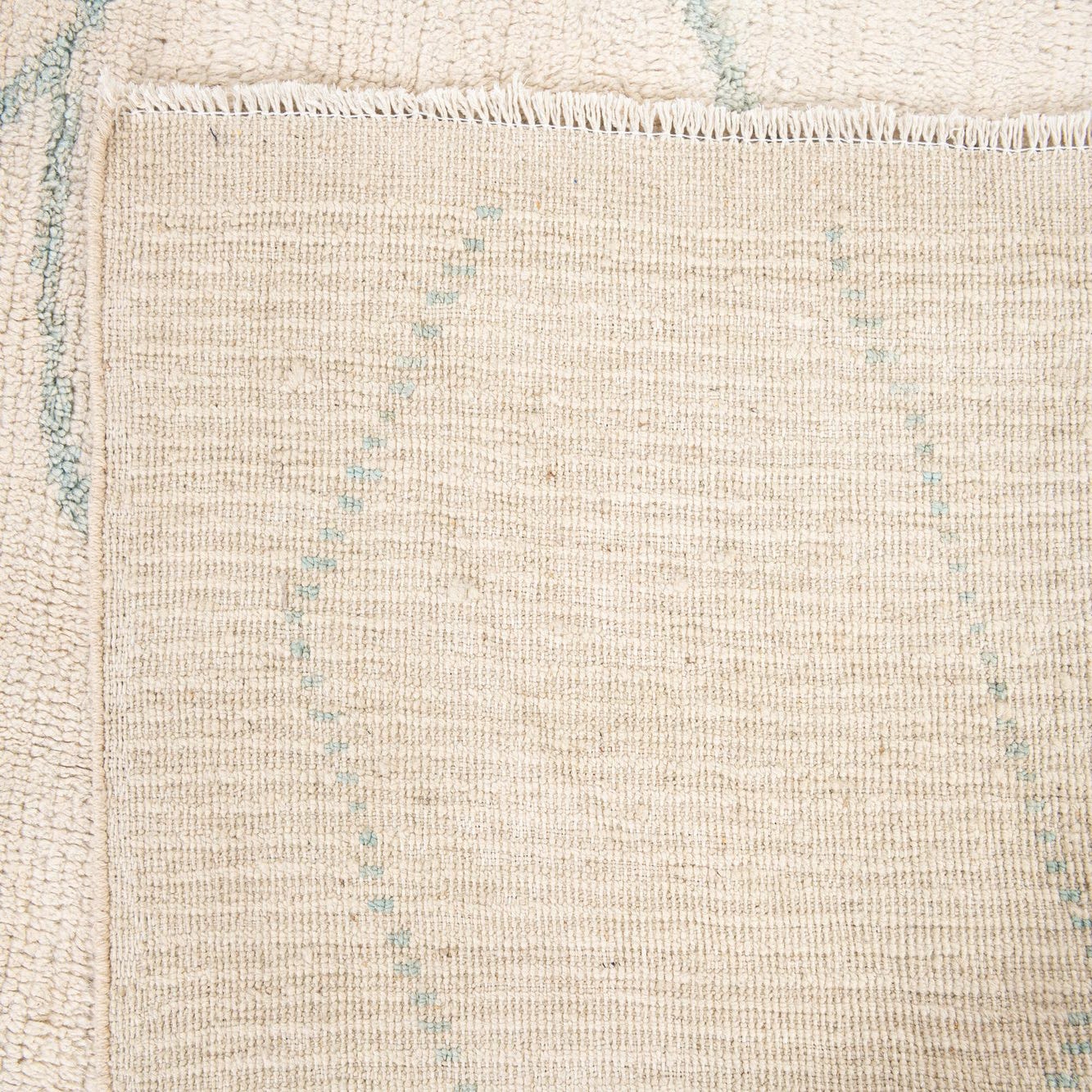 Primary color is Cream. Colors in this rug include: Cream, Light Blue.