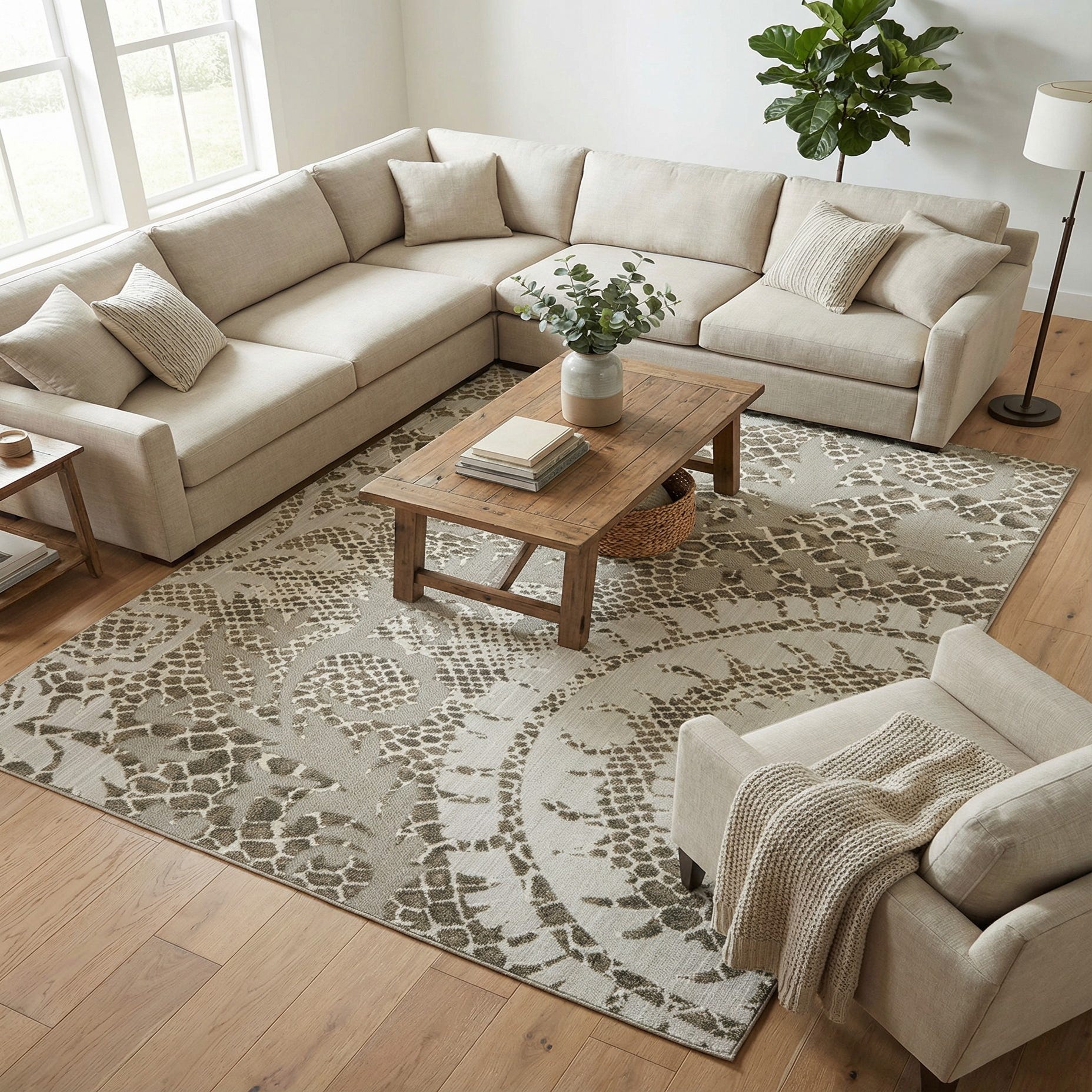 Primary color is Cream. Colors in this rug include: Cream, Beige, Brown.