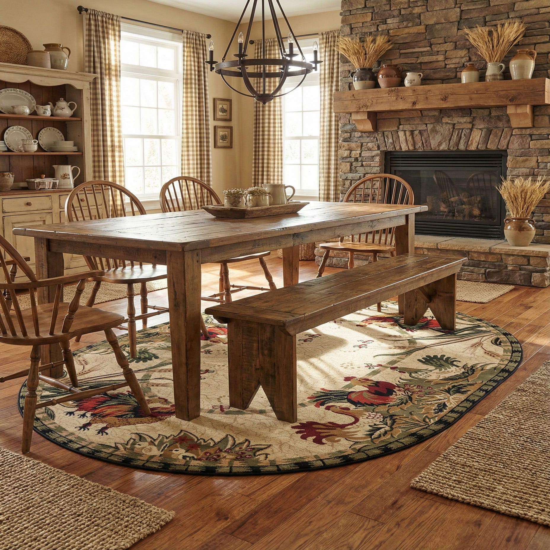 This rug can seamlessly integrate into a variety of decor settings. It's particularly well-suited for enhancing traditional, farmhouse, or country-style interiors. Its natural palette and thematic pattern would be a perfect addition to dining areas, living rooms, or any space where a touch of pastoral charm is desired.