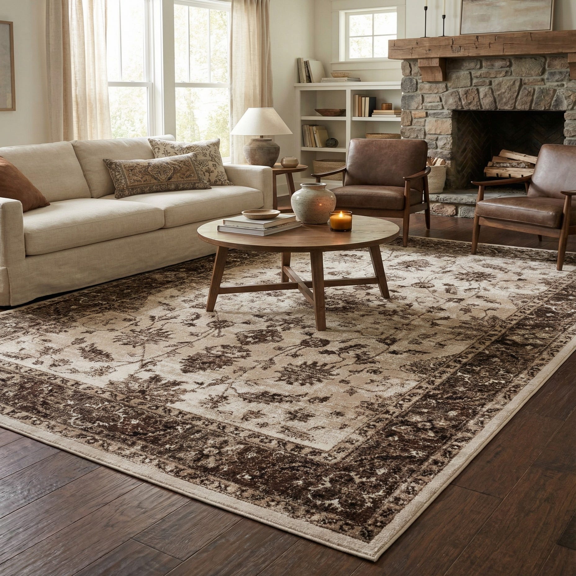 Primary color is Cream. Colors in this rug include: Cream, Beige, Brown, Light Brown.