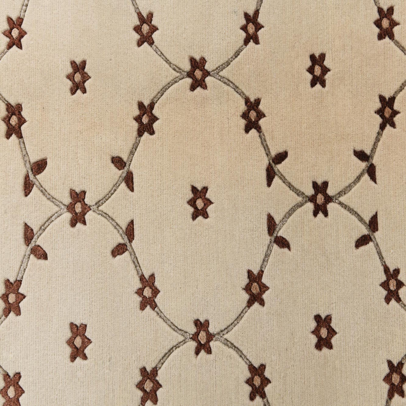 Primary color is Cream. Colors in this rug include: Cream, Burgundy, Light Brown, Tan.
