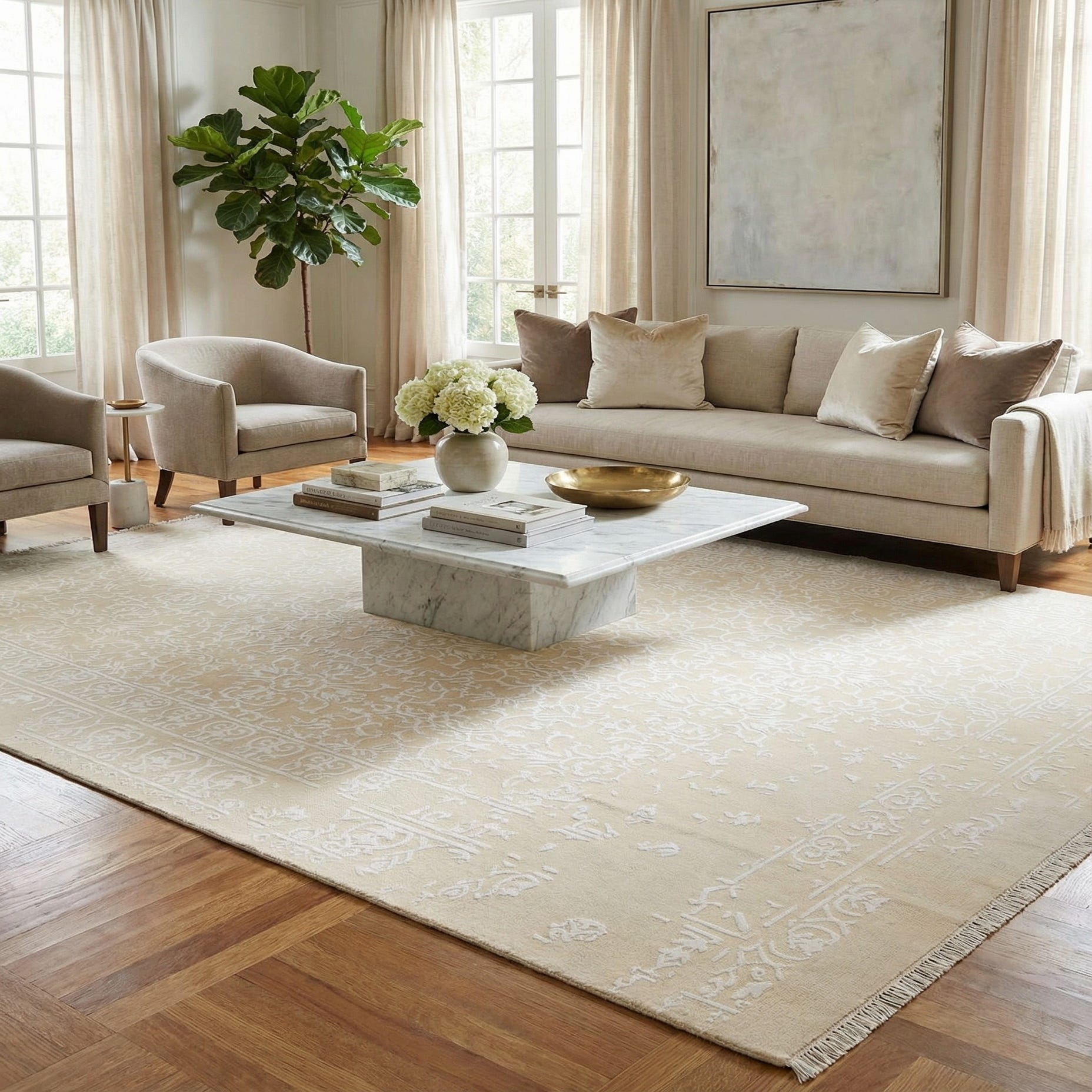 Primary color is Cream. Colors in this rug include: Cream, Beige.