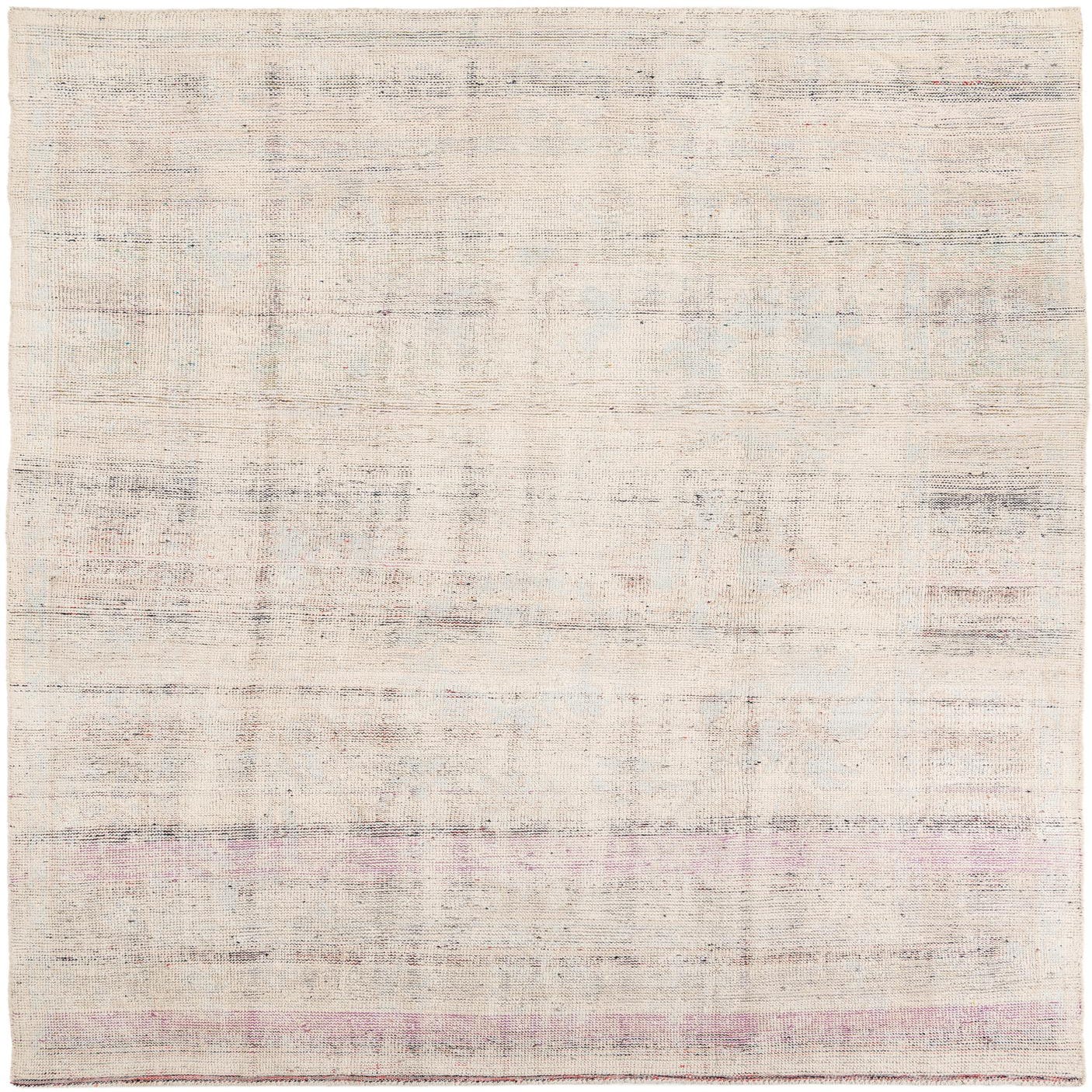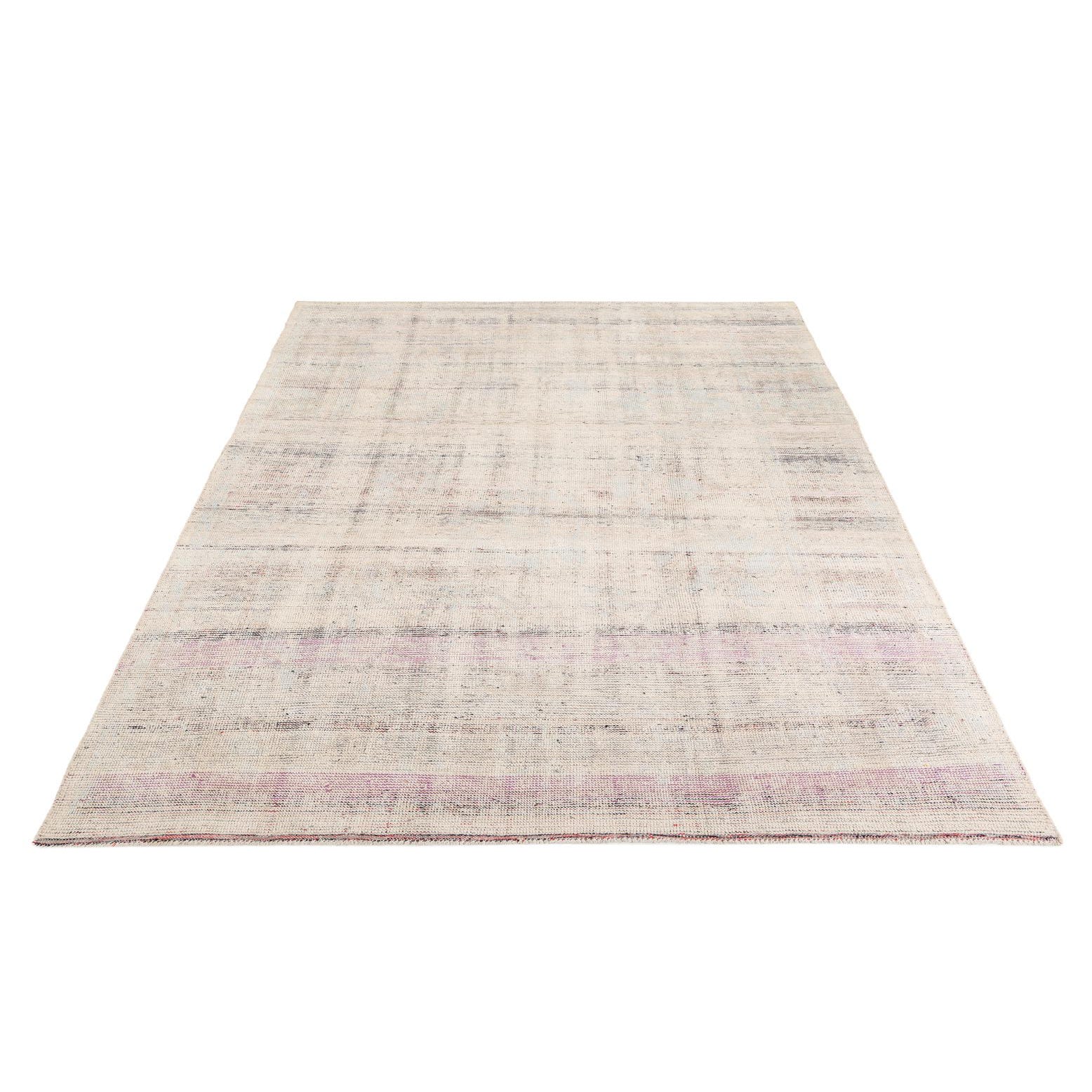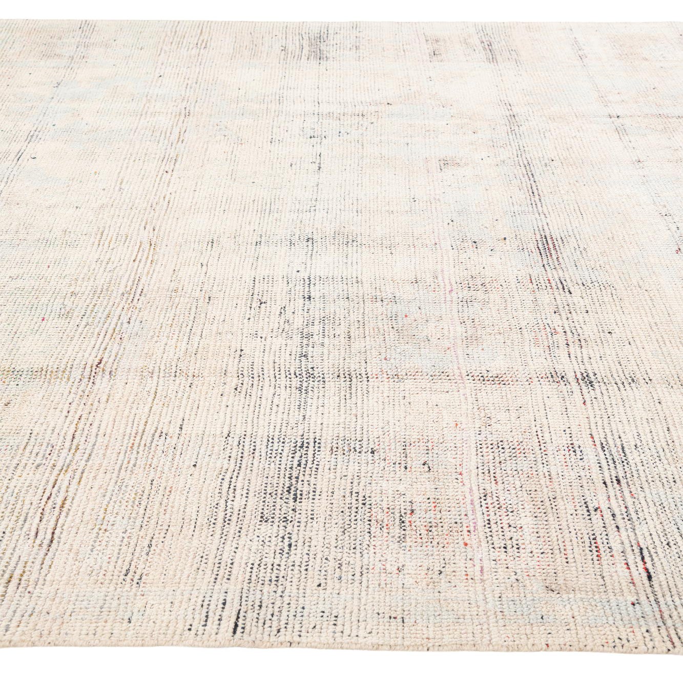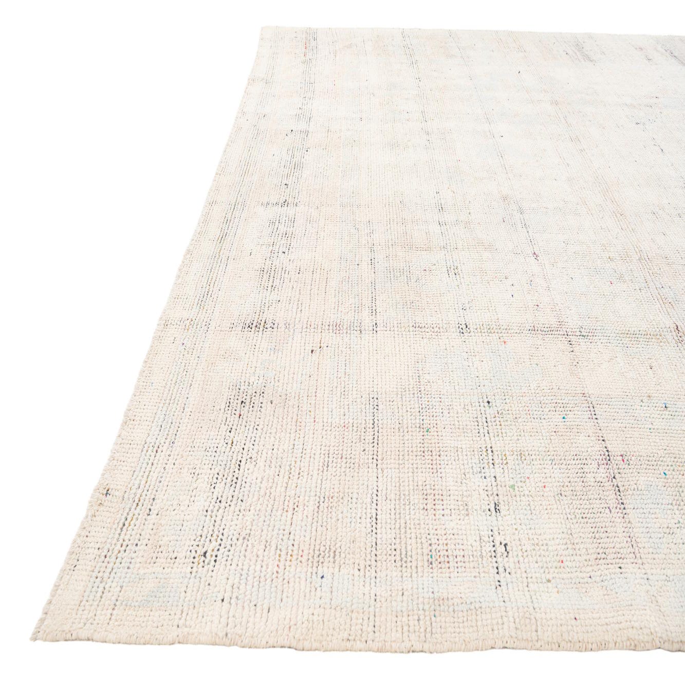 An 8x12 rectangular Oushak rug in ivory and cream with subtle modern patterns, handmade from wool.