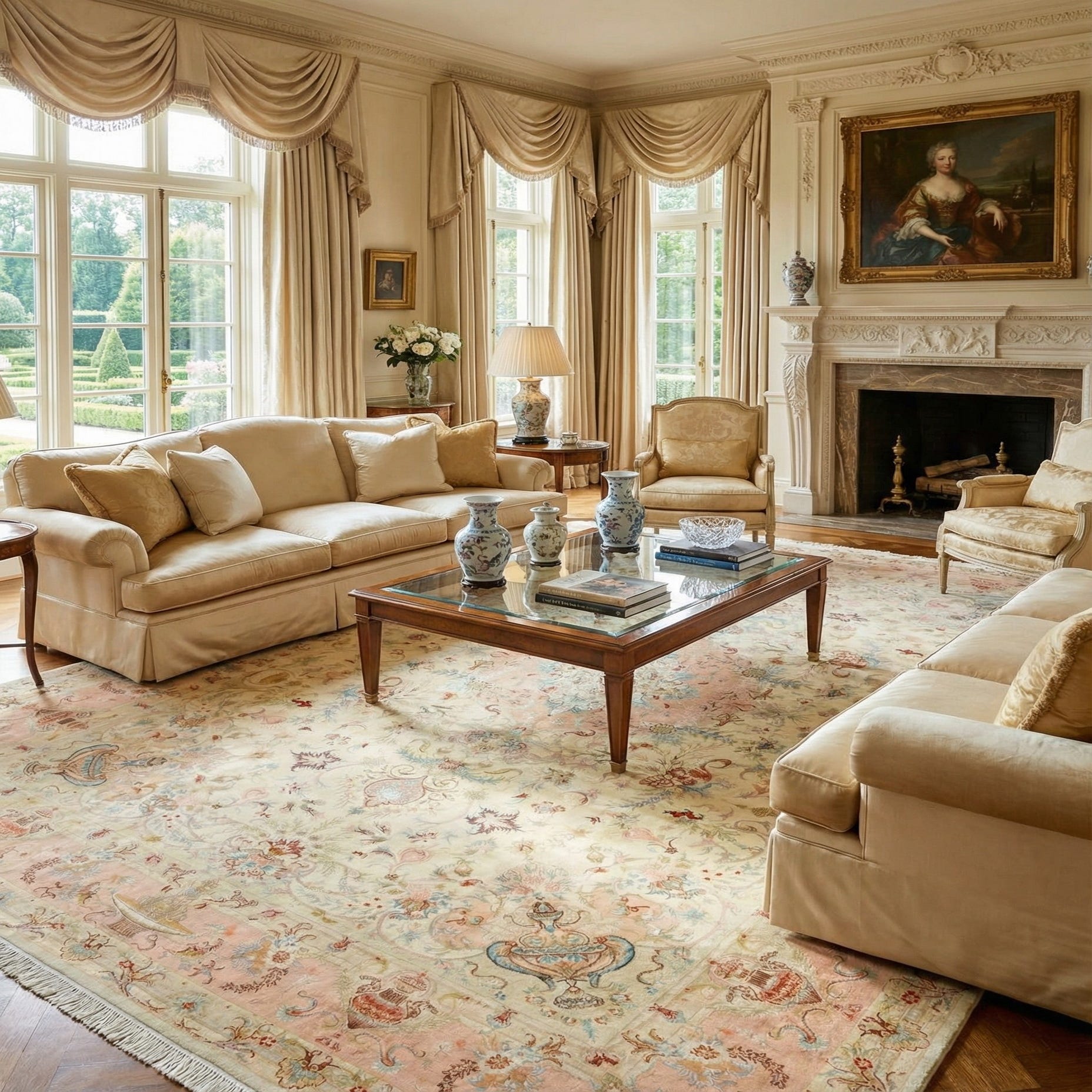 Ideal for formal living rooms, dining rooms, or grand entryways, this rug can serve as a focal point in traditional and classic interiors. Its richly detailed design pairs well with sophisticated wood furnishings and a refined color scheme. Additionally, it can be incorporated into transitional spaces that bridge the gap between classic and contemporary style, adding warmth and a sense of luxury.