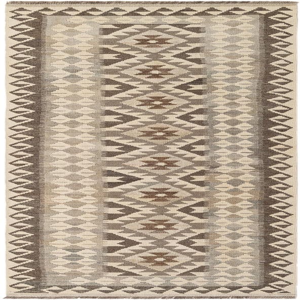 Primary color is Cream. Colors in this rug include: Cream, Brown, Gray.