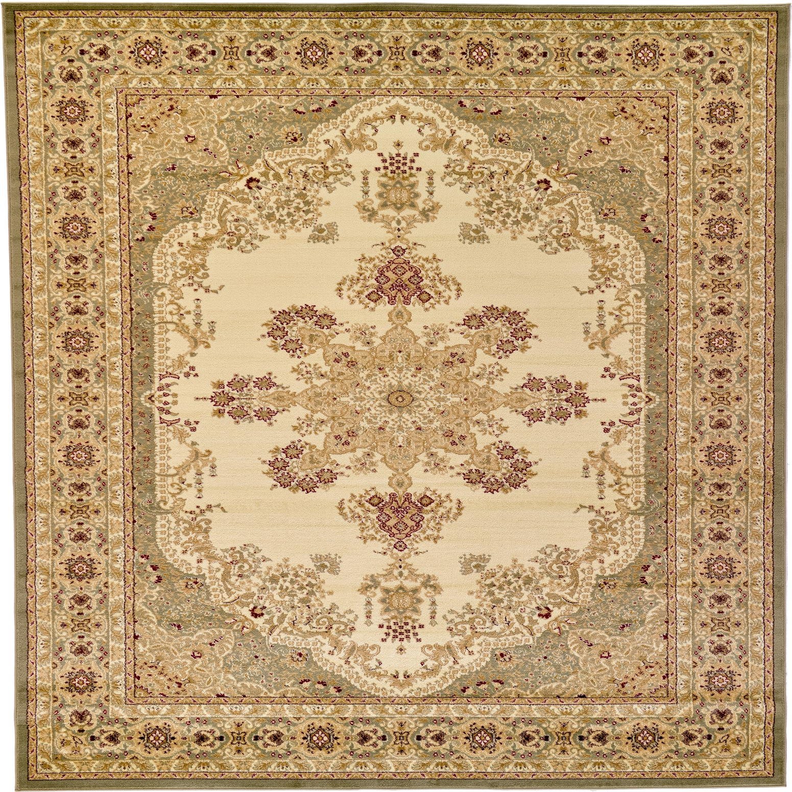 Primary color is Cream. Colors in this rug include: Cream, Light Green, Red, Tan.