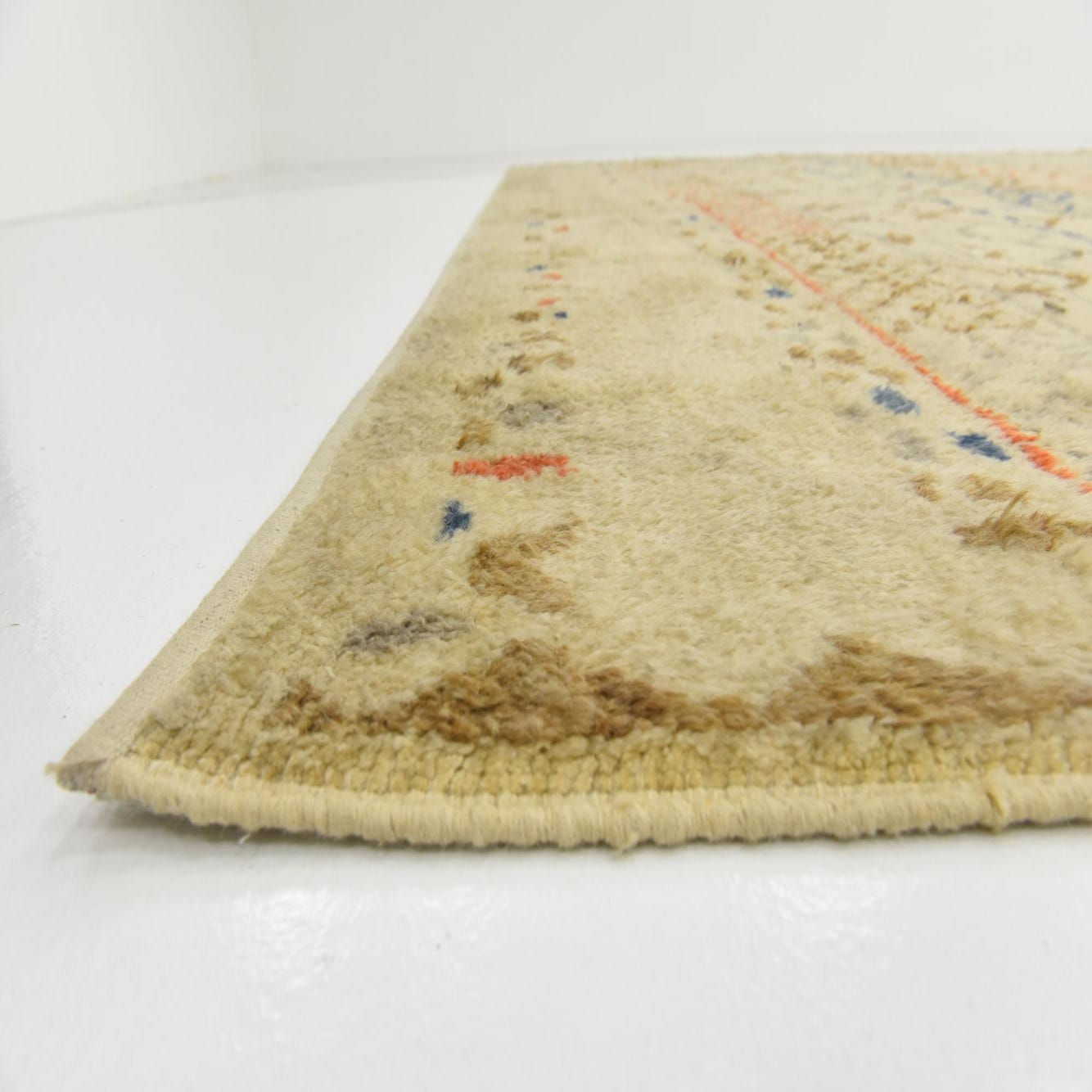 The relaxed pattern and natural wool hand make this rug a versatile anchor: place it beneath a seating group in a casual living room, layer it under a mid-century or modern farmhouse dining table, or use it to add warmth and pattern to a bedroom seating area. Its neutral cream base works well with natural wood, leather, and muted upholstery while the pops of navy and terracotta bring energy to minimalist and Scandinavian-inspired interiors.
