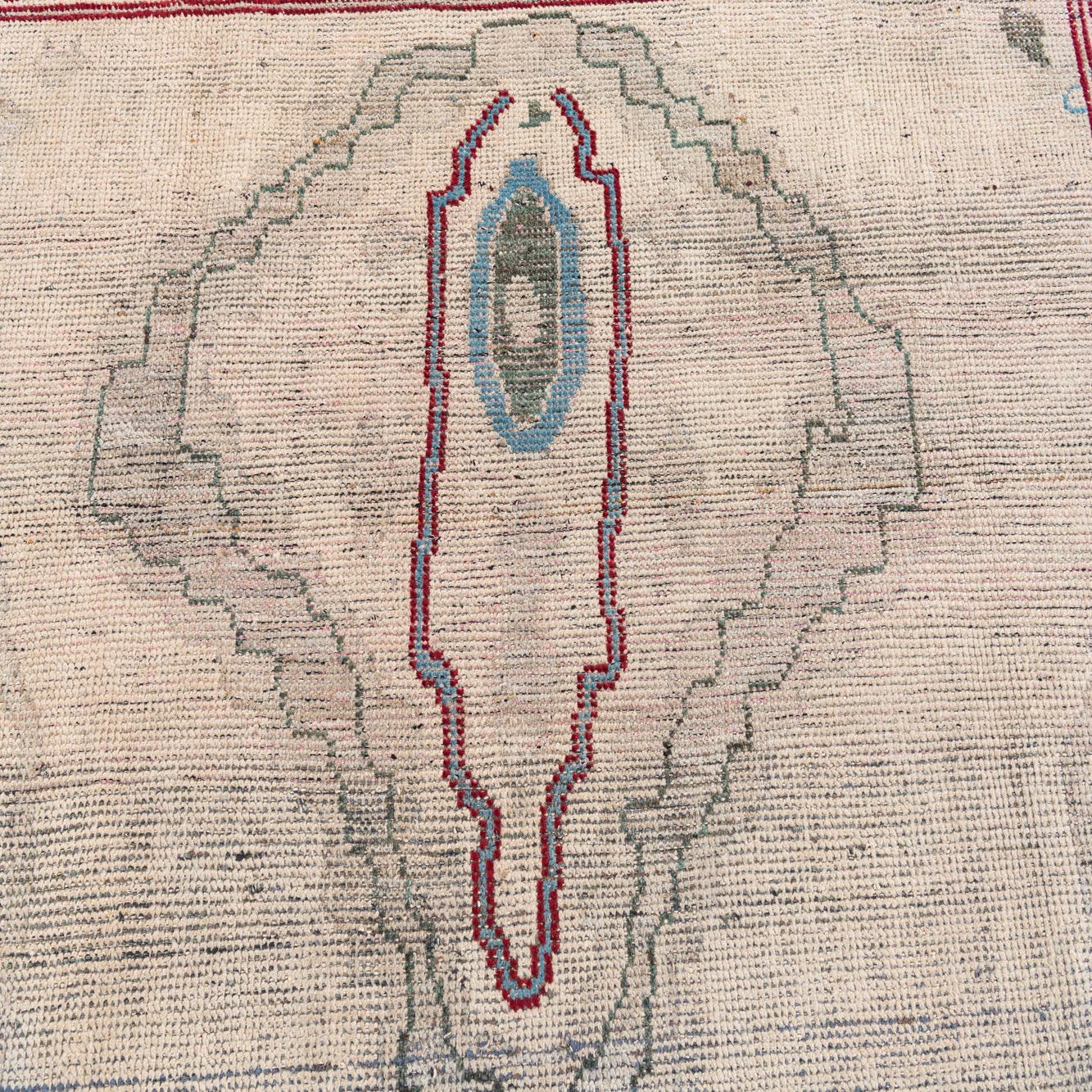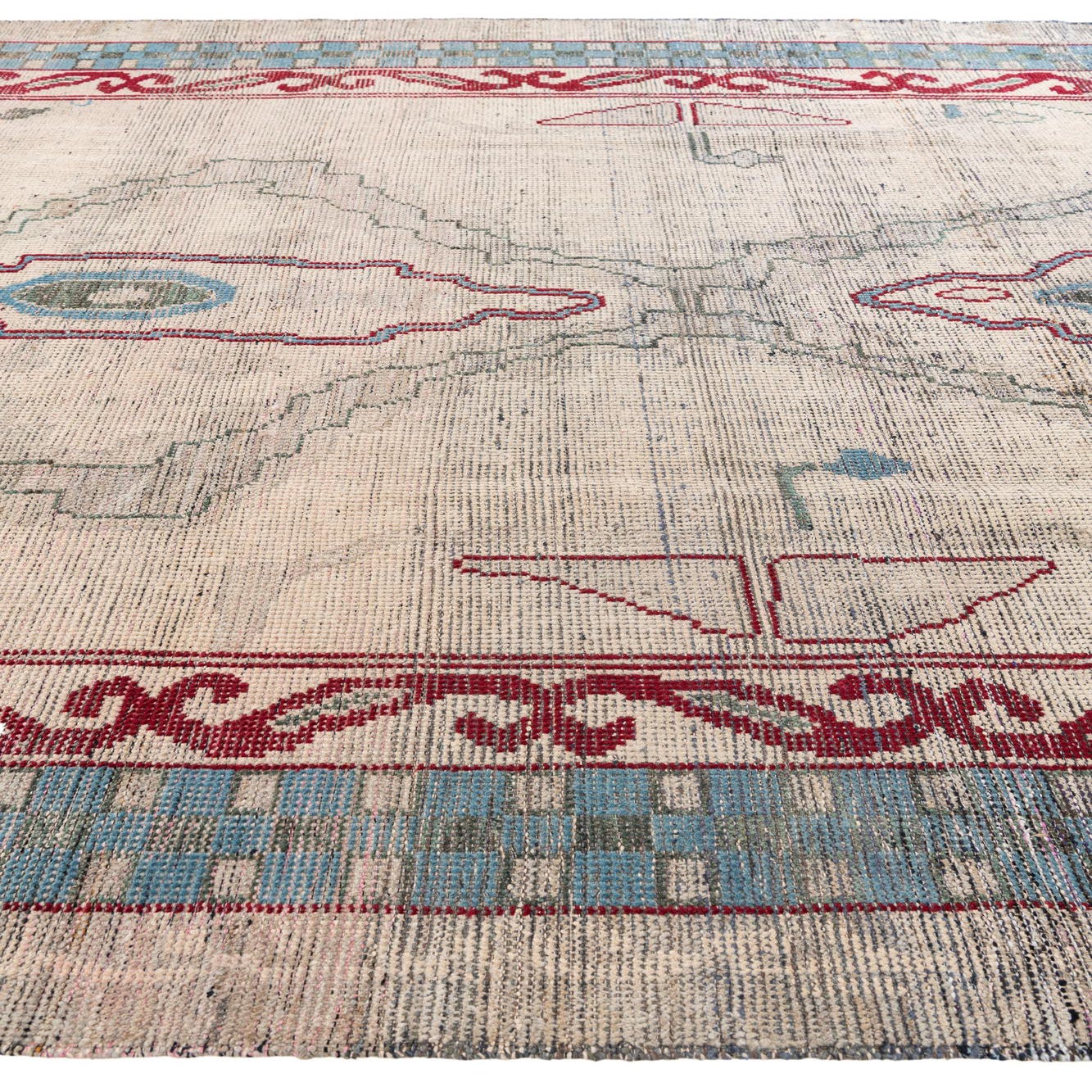 Primary color is Cream. Colors in this rug include: Cream, Brown, Light Blue, Red, Green, Gray.