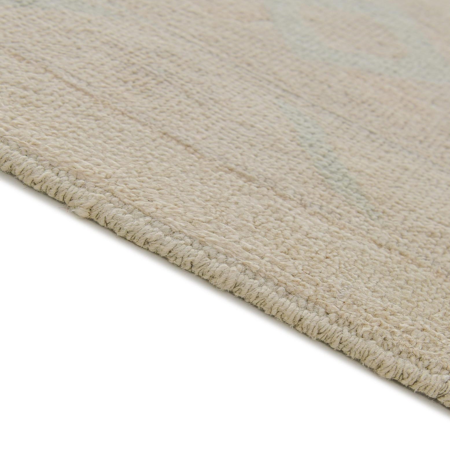 Primary color is Cream. Colors in this rug include: Cream, Brown, Light Blue.