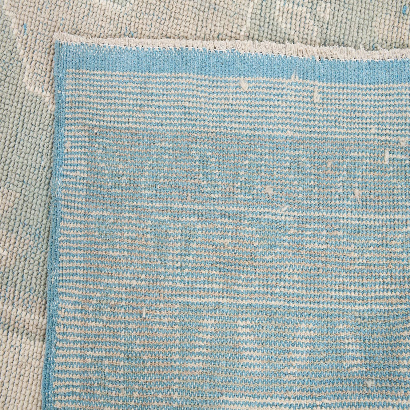 This rug works well in living rooms and bedrooms where a light, relaxed look is desired — place it under a coffee table to define seating or anchor a bed with room to spare at the sides. It pairs naturally with weathered or painted wood, linen and neutral upholstery, and brass or matte metal accents, and suits transitional, coastal, Scandinavian, or modern farmhouse interiors that favor muted color and subtle pattern.