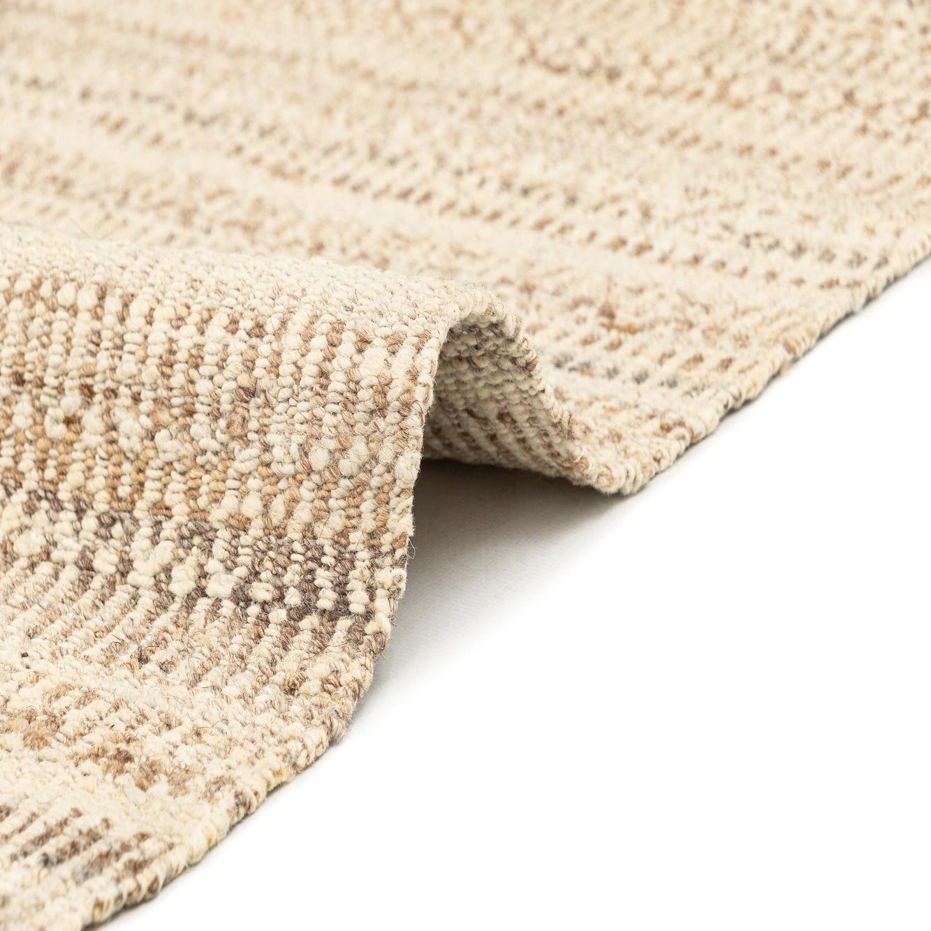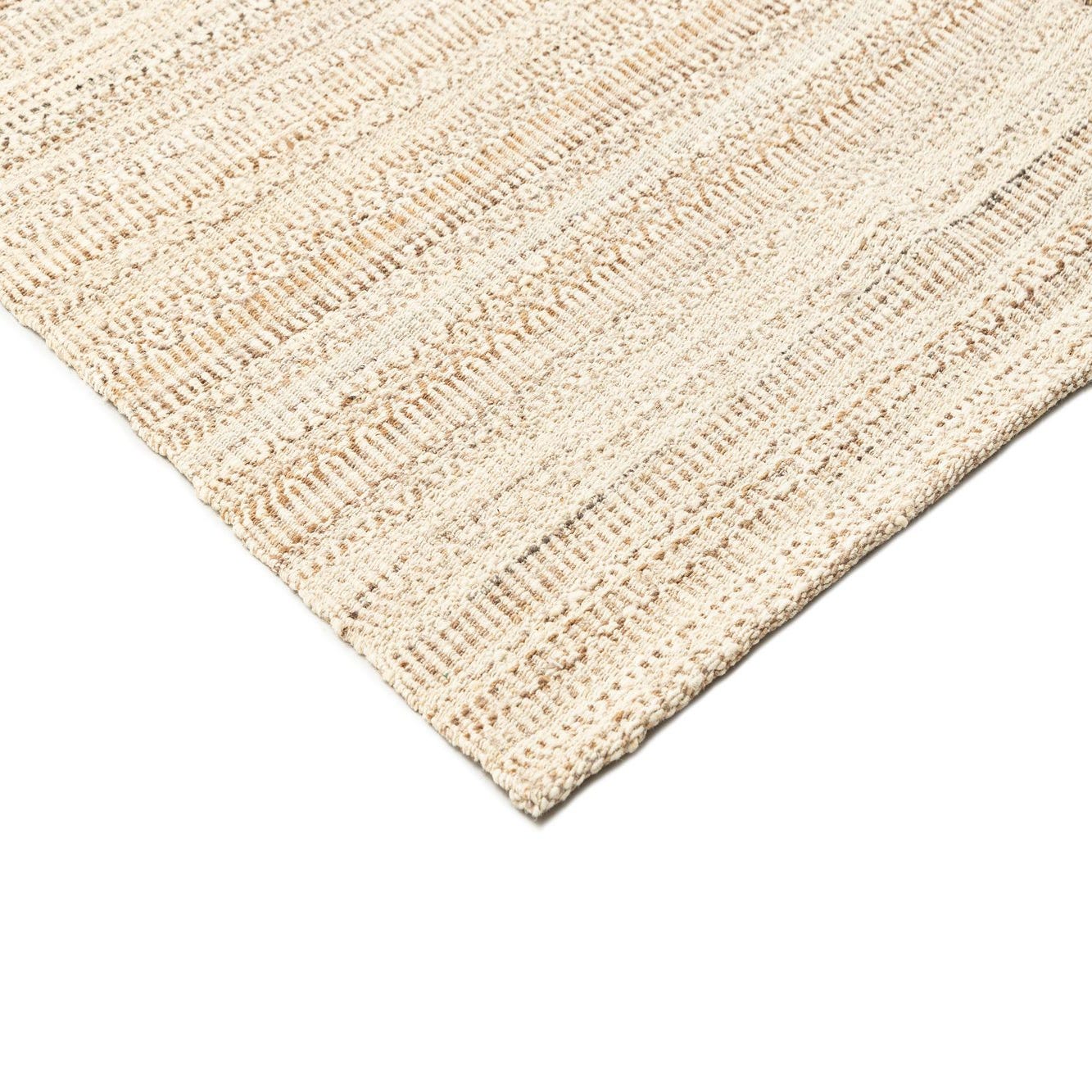 A rectangular, handmade Marok Kilim rug in ivory and cream, featuring a flatweave with subtle tribal patterns.
