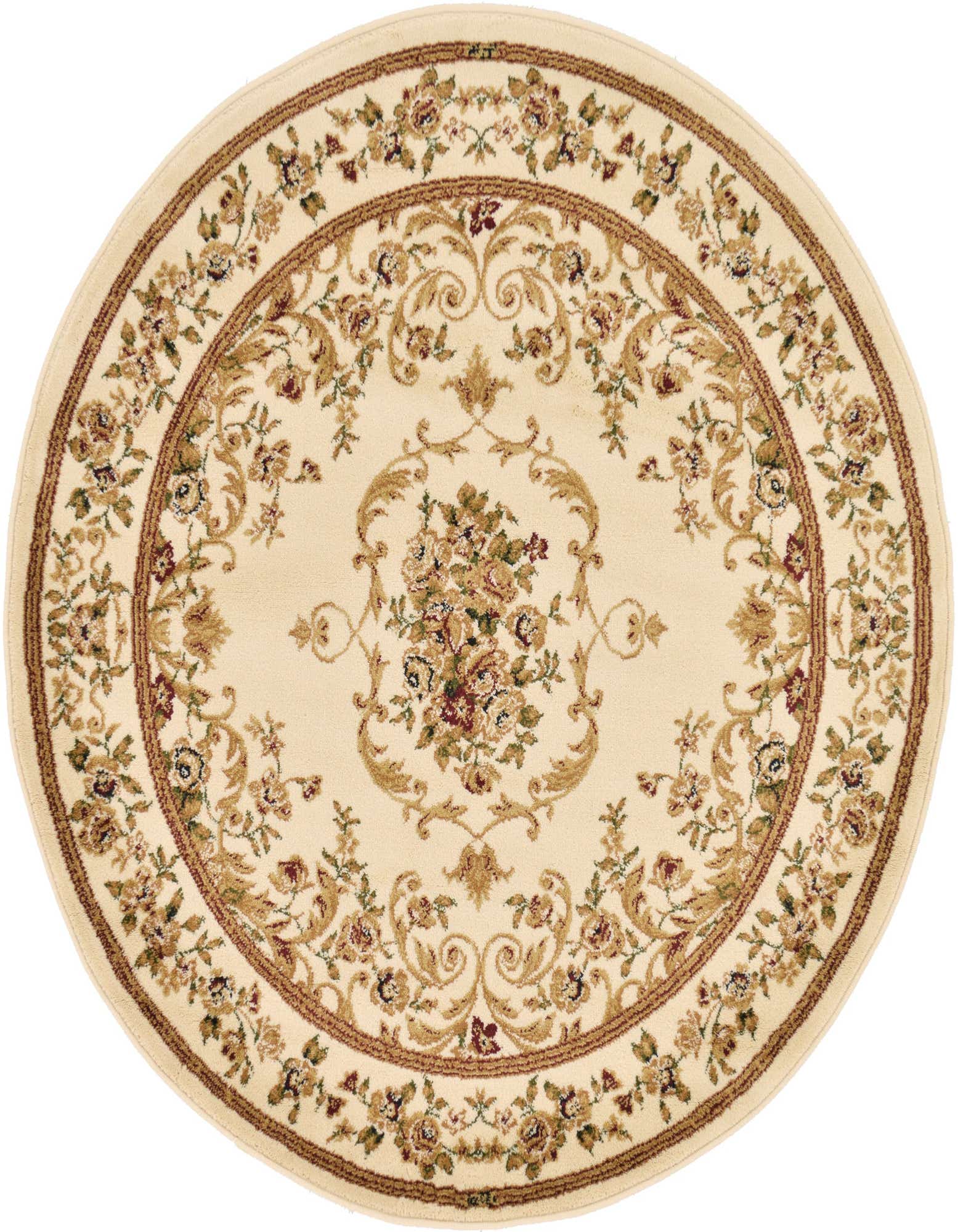 Primary color is Cream. Colors in this rug include: Cream, Beige, Light Brown, Green, Red.