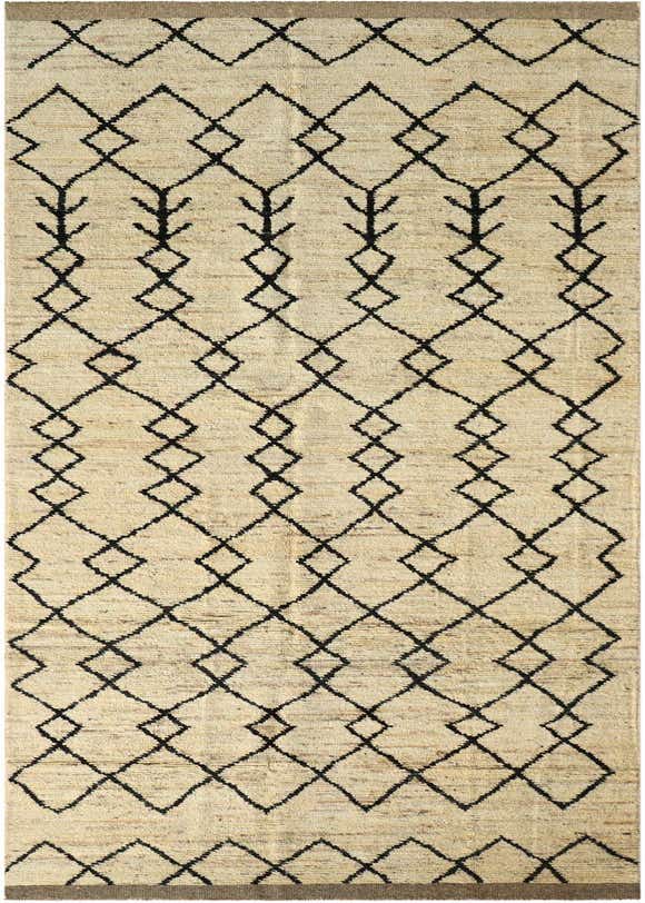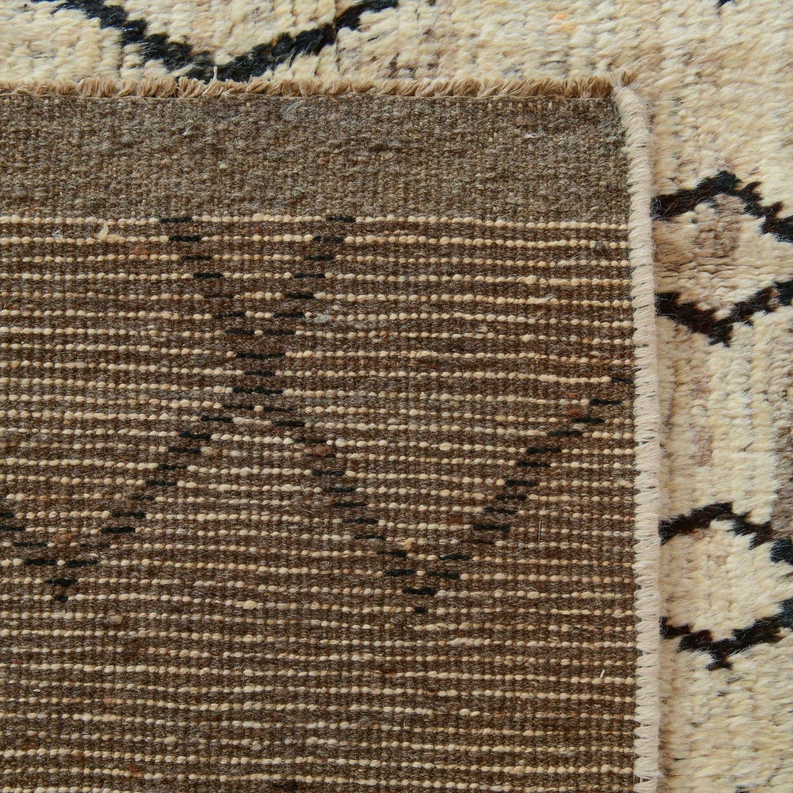Primary color is Cream. Colors in this rug include: Cream, Black, Brown.