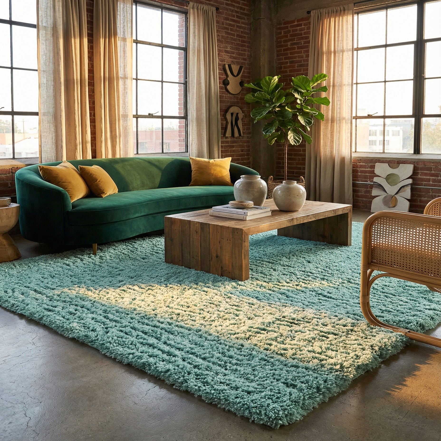 A soft, shag silhouette in a clear cyan background offers a calm, modern look with understated texture. The surface is largely solid in color, with gentle, linear striations that catch light and create subtle depth across the pile. The overall effect is clean and contemporary while still feeling warm and approachable.