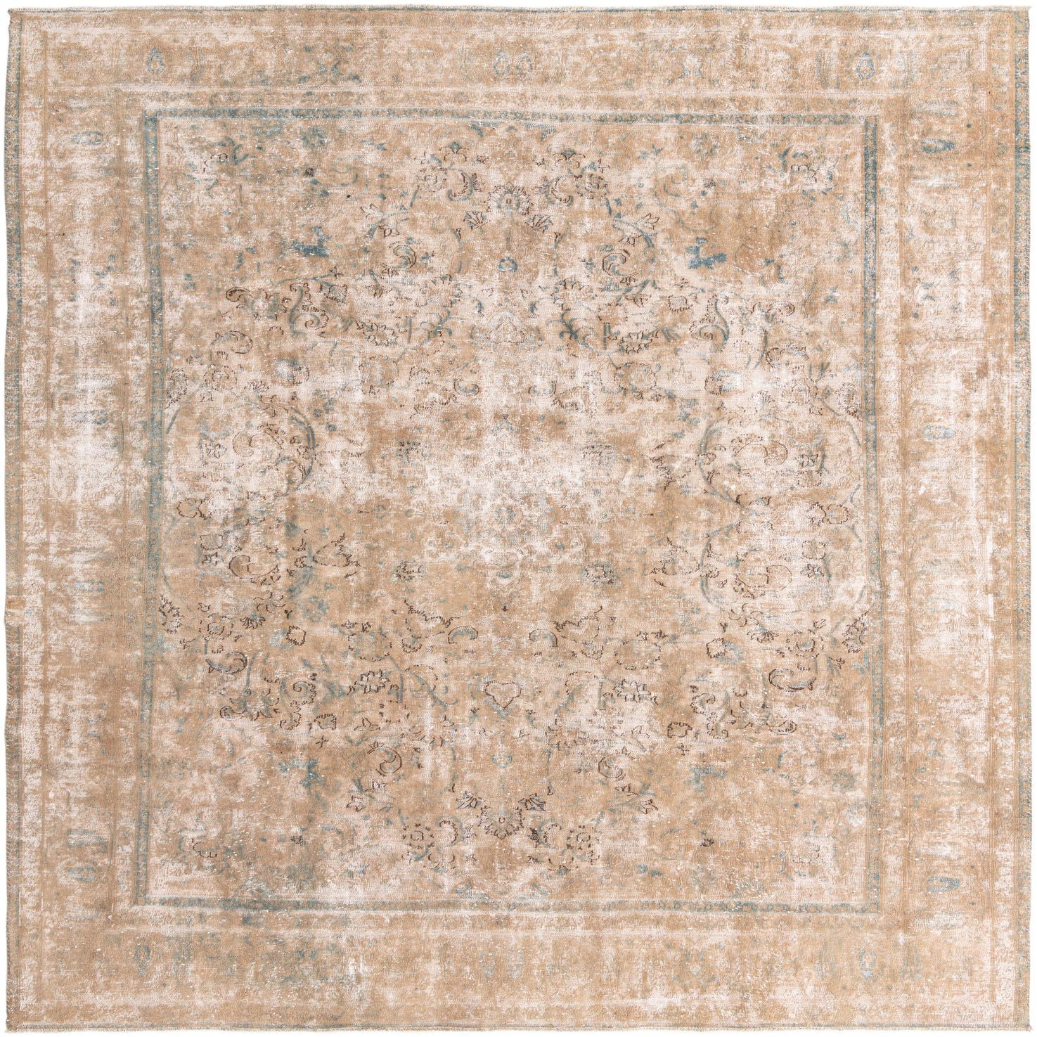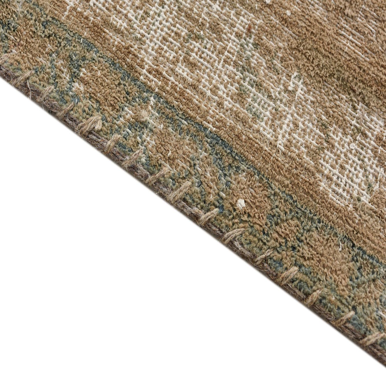 The rug's texture and handcrafted quality are evident in its detailed patterns, suggesting a timeless elegance that can complement a broad range of interior design themes. From traditional to transitional spaces, this rug could serve as a tasteful centerpiece in a formal living room or as a harmonious addition to a dining room with wooden furniture and antique accents. Its muted color scheme and vintage-inspired design can also integrate seamlessly into a bedroom where a sense of warmth and serenity is desired.