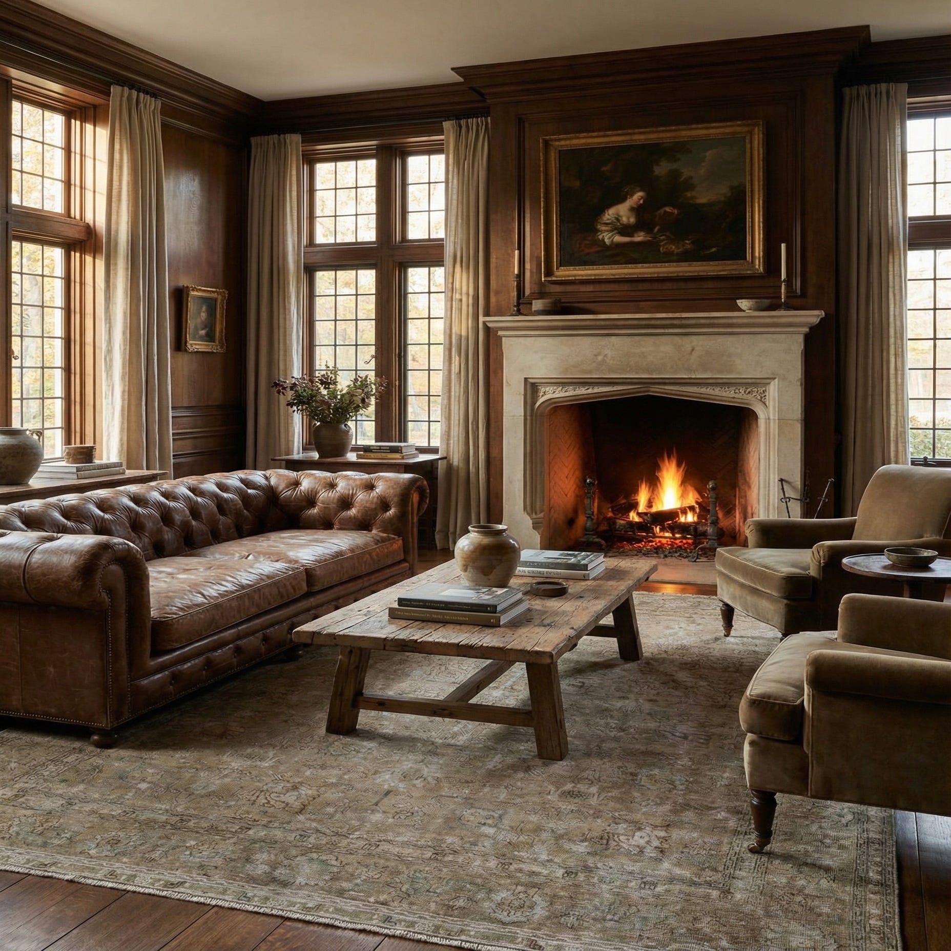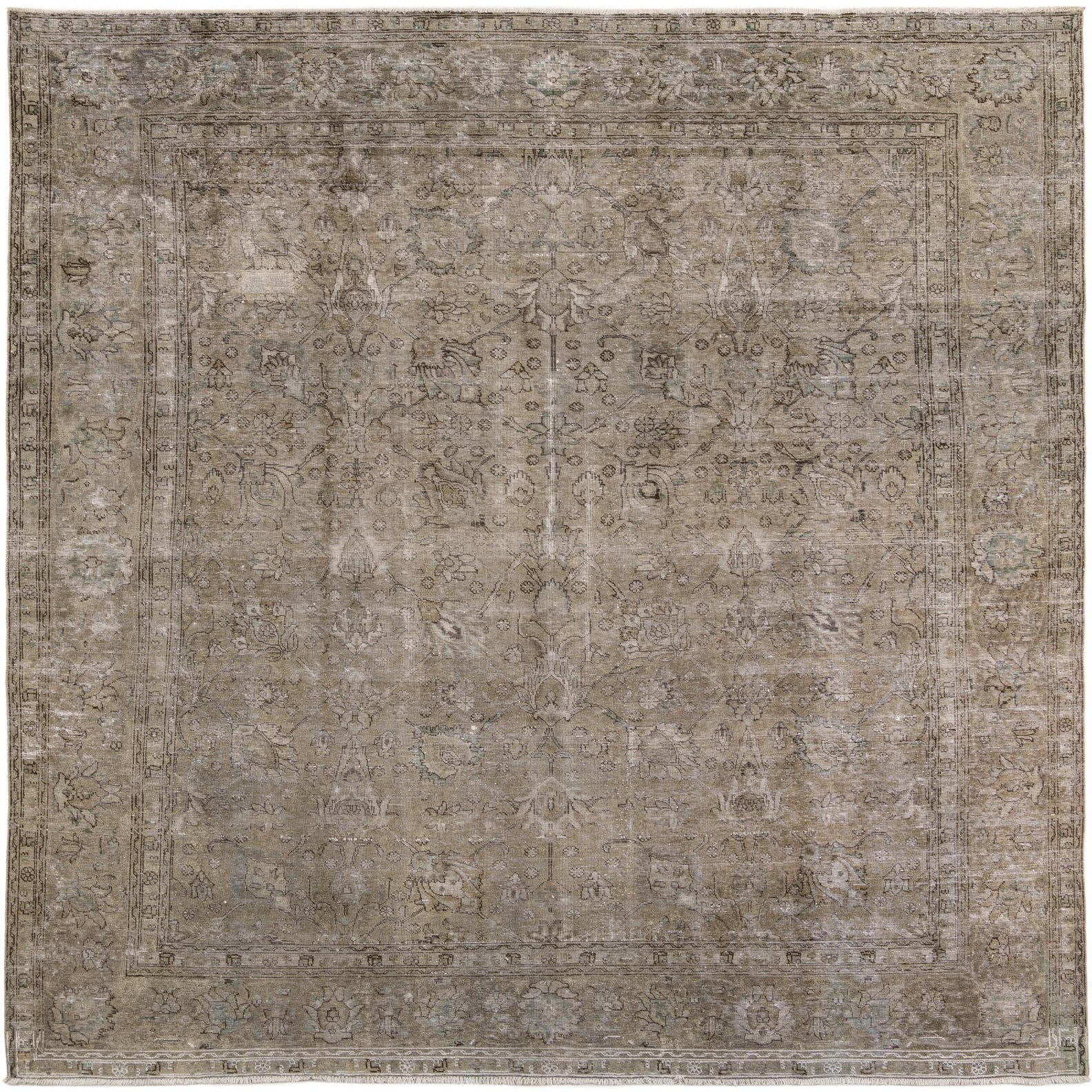 A 10x13 rectangular Ultra Vintage wool rug in browns and tans with a faded Persian medallion pattern.
