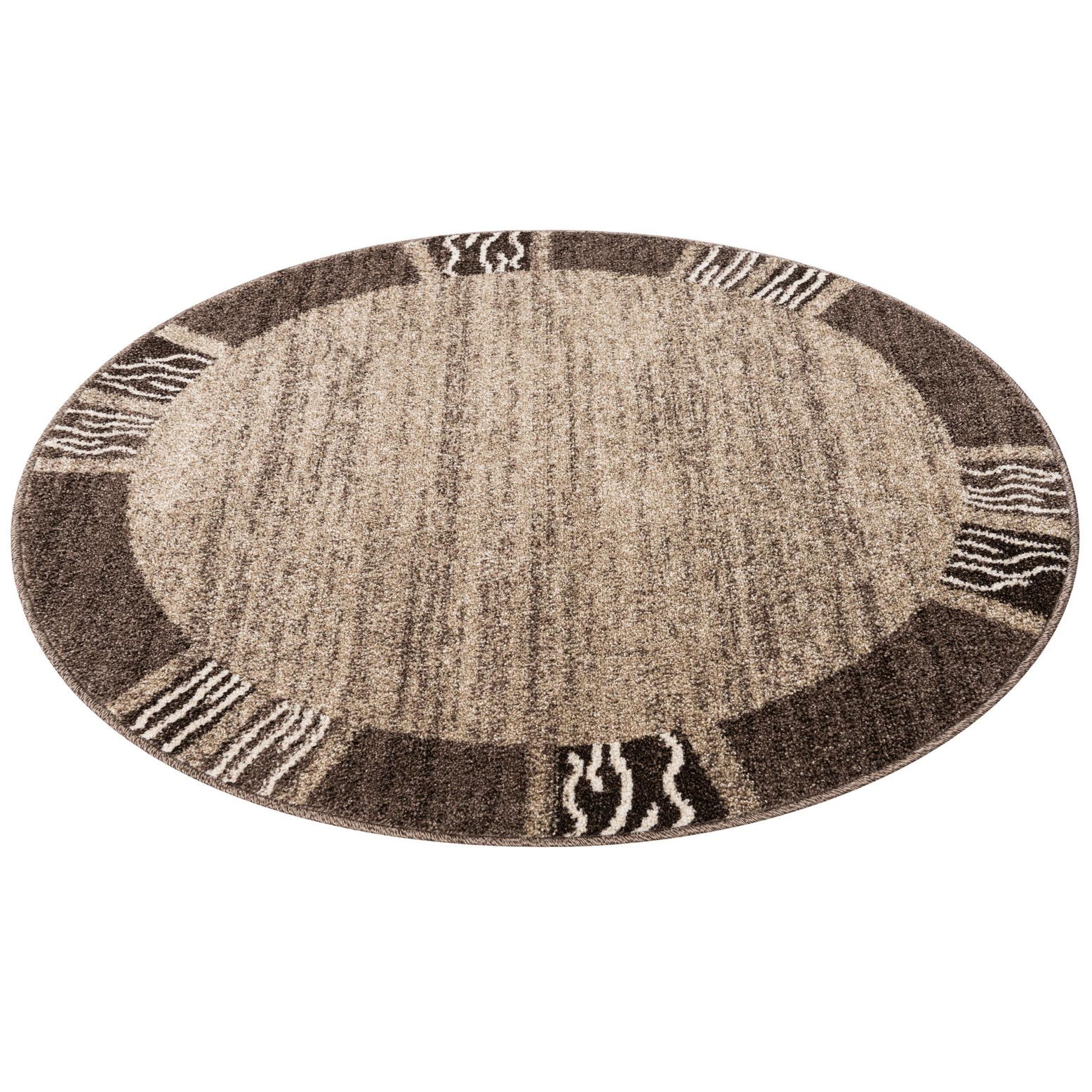 The neutral color palette of dark beige, beige, and brown allows this rug to complement a wide range of interior design themes, from minimalistic and modern to more traditional spaces. Its round shape is particularly well-suited for anchoring furniture in compact areas, such as under a small dining table, in a cozy reading nook, or as a focal point in an entryway.