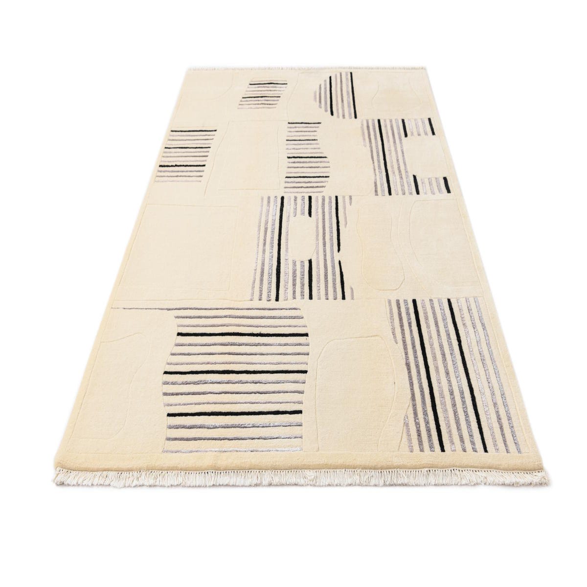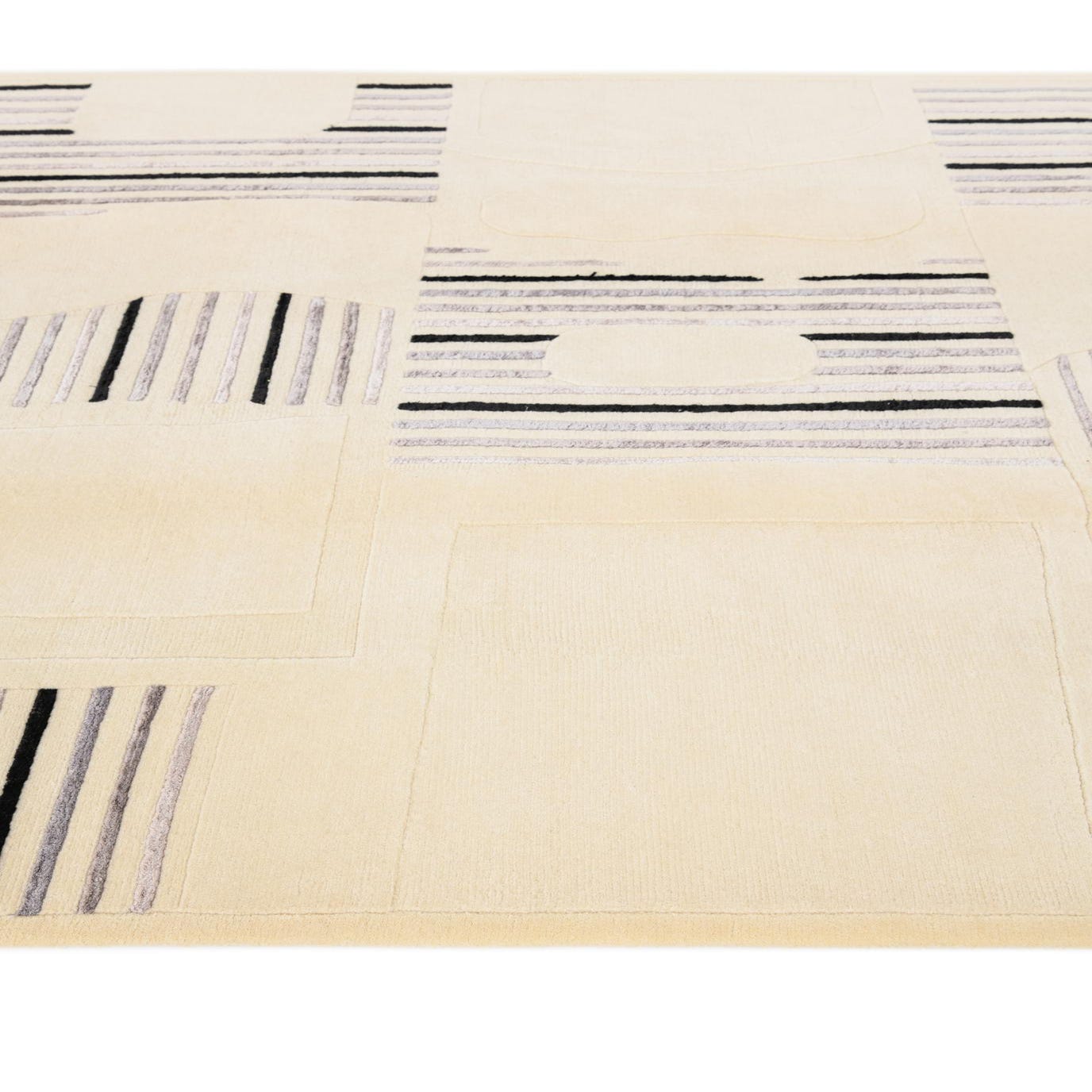With its modern aesthetic, the Darya rug can seamlessly integrate into a variety of interior designs. Its neutral hues and engaging pattern make it an ideal choice for minimalist spaces that require a touch of depth and character without overwhelming the room. This rug would also work beautifully in an industrial setting, where its clean lines and stark color contrasts can echo architectural elements. In a more eclectic living area, it could serve as a unifying piece, tying together different color schemes and design motifs. The hand-knotted construction ensures that each rug is unique, adding individuality to any room it graces.