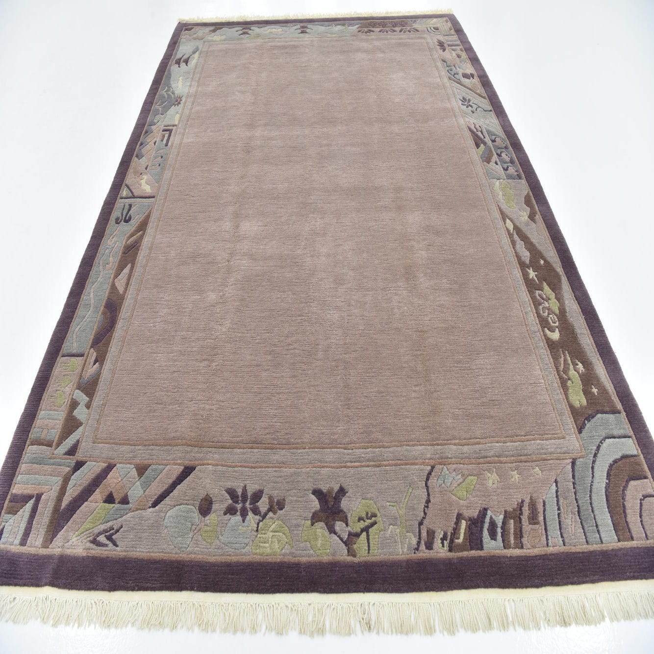 An 8x11 rectangular Nepal Collection rug featuring a solid brown center and an intricate border with abstract Oriental patterns in shades of brown, tan, and cream.